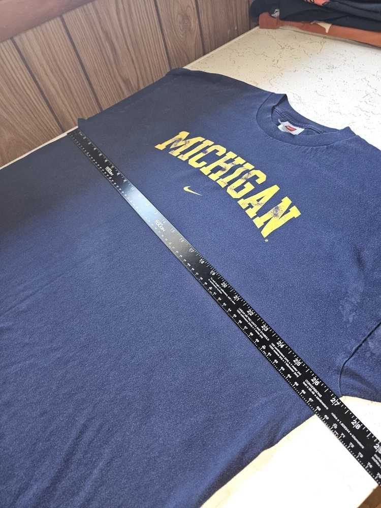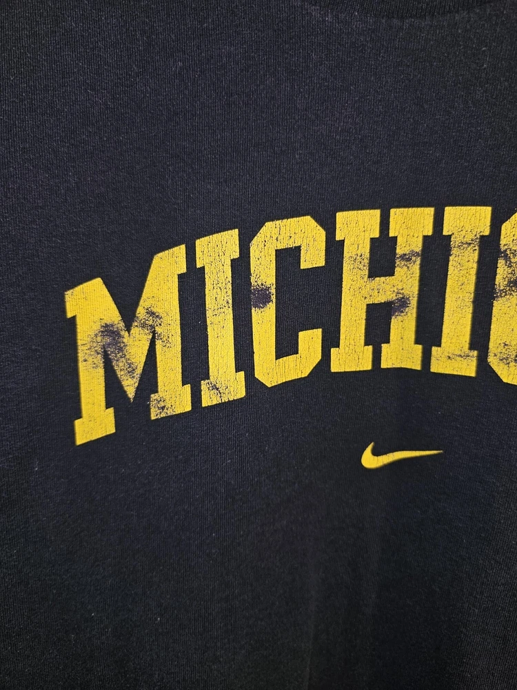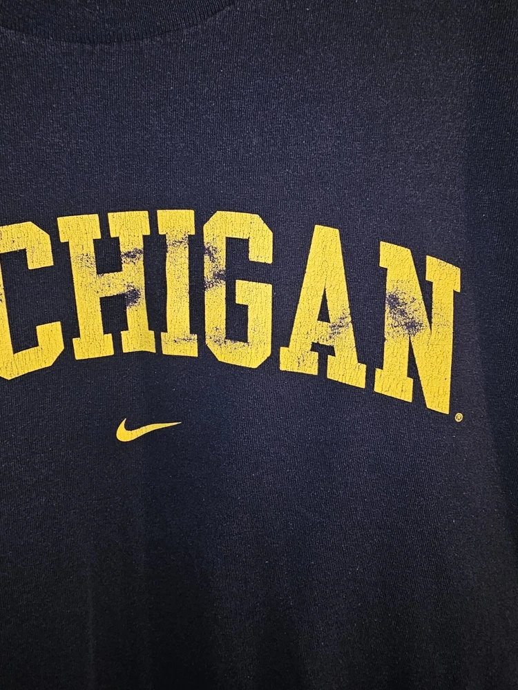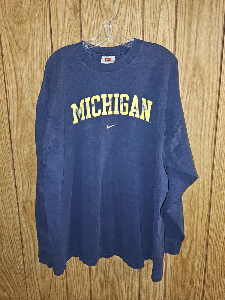 Discoloration spots see pictures for details This is a vintage Nike Michigan Wolverines long sleeve shirt for men in size 2XL. It features the official NCAA logo and team graphics in blue. The shirt is officially licensed and perfect for football fans supporting the Michigan Wolverines during the regular season. Made in Mexico.