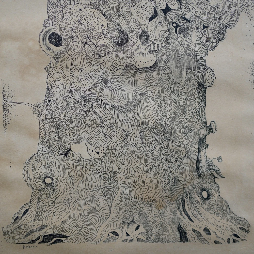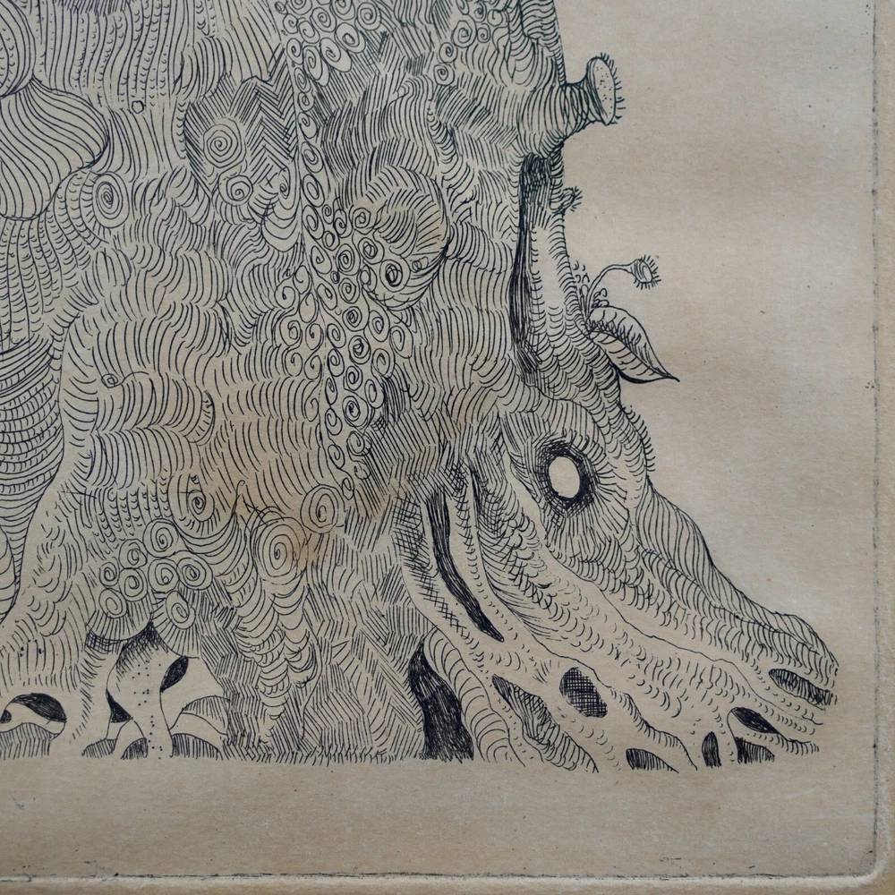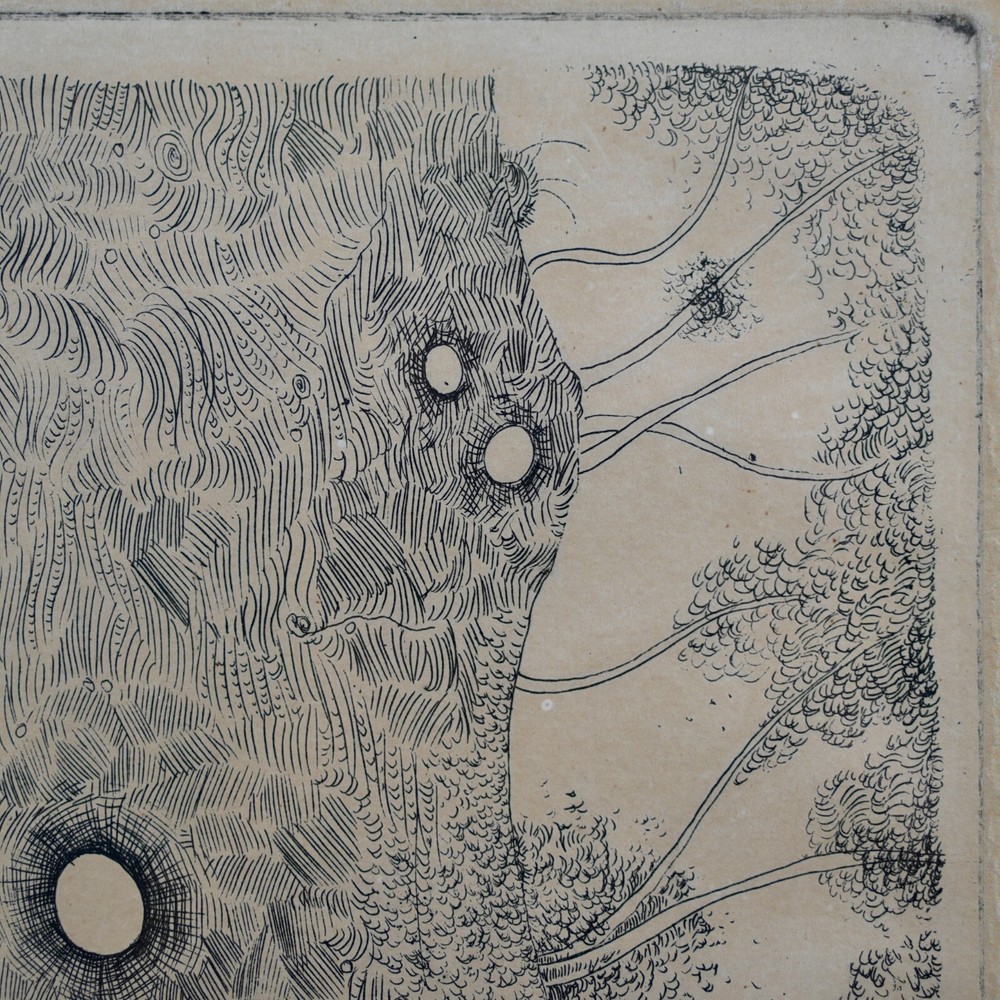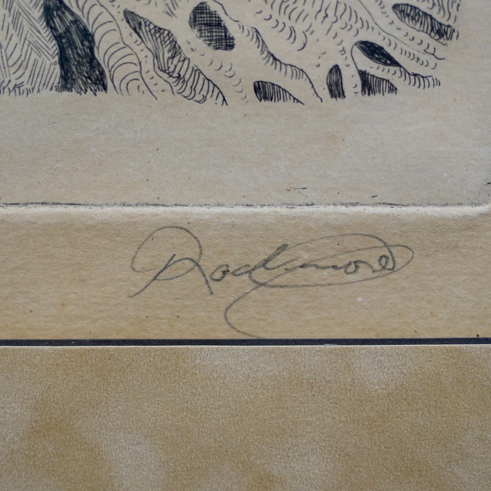 The Vintage ( Circa.1960s ) Framed Limited Edition Abstract Expressionist Etching on Paper "Tree of Life" , Pencil Signed By Artist Noel Rockmore ( American, 1928-1995 ) in Lower Right, Numbered 4/25 and IMP. (Impression) J. FARRAR in Lower Left. It Depicts the Scene of A Giant Tree of Life in the Style of Abstract Expressionism, with Extremely Delicate and Vivid Details. The Etching Shows Toning, Foxing, and Some Wear on the Frame Consistent with Age, In Good Condition. About Artist: "Noel Rockmore (December 15, 1928 – February 19, 1995) was born Noel Montgomery Davis to his mother, Gladys Rockmore Davis, and his father, Floyd Davis, in New York City. Rockmore was an American painter, draughtsman, and sculptor. He produced more than 15,000 works of art in his lifetime. He is known for his portraits, his early rise to fame, his Preservation Hall portraits, and for changing his name at the height of the popularity he had developed in New York City. Noel painted in a realistic and old masters style throughout his childhood and adolescence. He experimented with different artistic theories, techniques, and ideas in the New York art world of the 1950s. Rockmore reached what for most artists would have been a career pinnacle when he was given a show at the Metropolitan Museum of Art in New York in 1952 at the young age of 24. A few years later, his paintings were shown at the Whitney Museum (1958), the Pennsylvania Academy in Philadelphia and the Cleveland Institute of Art. As the abstract expressionist movement gained momentum, Rockmore left New York and went to New Orleans, where he changed his name from Noel Davis to Noel Rockmore, adopting the surname of his mother. Once the Preservation Hall series was complete, Rockmore traveled back and forth between New York and New Orleans throughout the 1970s and 80s, creating many different series, including a Civil War series, an Ancient Egyptian series, and an Immigration series. In 1998, a retrospective was held at the New Orleans Museum of Art (NOMA), sponsored by Shirley Marvin, Preservation Hall, and NOMA. The show "Noel Rockmore: Fantasies and Realities" was presented by curator Gail Fiegenbaum and included a brochure and panel discussion with George Wein, Shirley Marvin and Rita Posselt. In November 2006, one year after Hurricane Katrina, Rich and Tee Marvin, Shirley's son and daughter-in-law, discovered over fourteen hundred (1,400) Rockmore works in Shirley Marvin's storage facility in New Orleans. They also found 35 years worth of correspondence, every Rockmore brochure and news article, as well as a documentary film all related to the life of Noel Rockmore. Museums such as the Hirshhorn Museum of Art, Museum of Modern Art, Metropolitan Museum of Art, New Orleans Museum of Art (NOMA) and Ogden Museum of Southern Art are graced with his brilliant works we know to be in existence. It is alleged that there are paintings we are still unaware of, which are located in homes and bars throughout New Orleans. His daughter, an affluent artist, had a recent opening in the New Orleans Jazz Museum last December 2019, titled, New Orleans Music Observed: The Art of Noel Rockmore and Emilie Rhys. New Orleans Music Observed: The Art of Noel Rockmore and Emilie Rhys promises to illuminate new insights into the work of these great artists, the venerated musicians who are their subjects, and even the mysterious nature of New Orleans music and New Orleans itself. " Title: "Tree of Life" Artist: Noel Rockmore ( American, 1928-1995 ) Time Period: 1960s Medium: Etching on Paper Signature: Pencil Signed Numbered: 4/25 Condition: Good Condition Frame Size: 29-1/4" By 20" Sight Size: 18-3/4" By 10" Available For Domestic Shipping and International Shipping. Thanks!