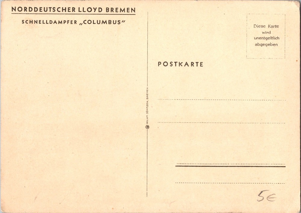Up for auction is a beautiful unused norddeutscher lloyd Columbus german passenger ship Picture Postcard Mint Norddeutscher Lloyd Columbus German passenger Steamer Ship Picture Postcard