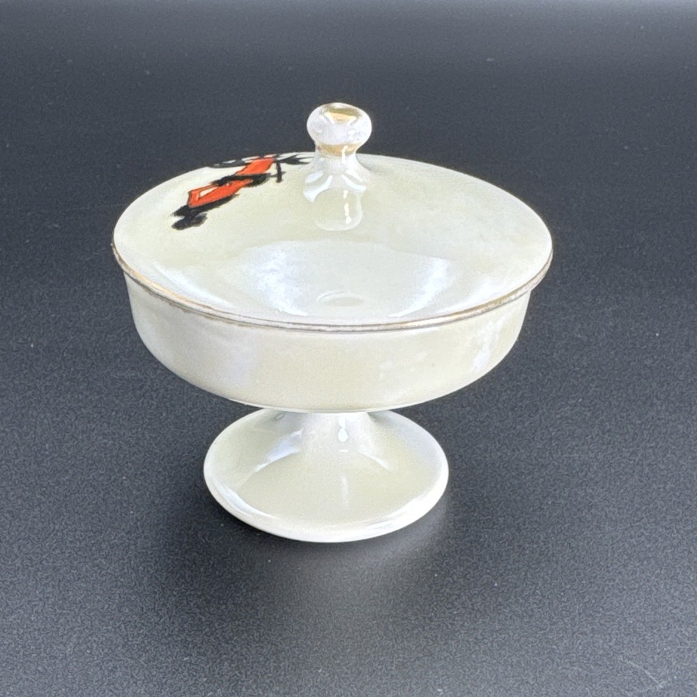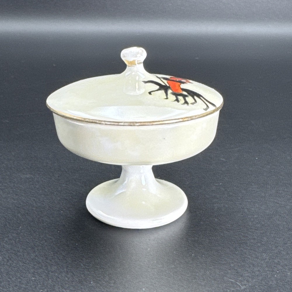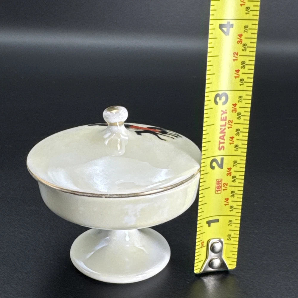 Preowned item in good condition. Color appears to have yellowed or darkened. Gild worn on knob handle and edges of lid. No chips, cracks or repairs. Dated by backstamp. Check Photos closely for condition and details. Packed carefully for shipping. We reuse clean packaging materials. Priority Mail Recommended! Items usually packed and shipped same day or next day (Business Days).