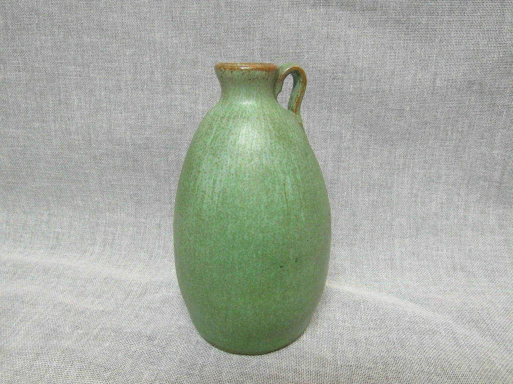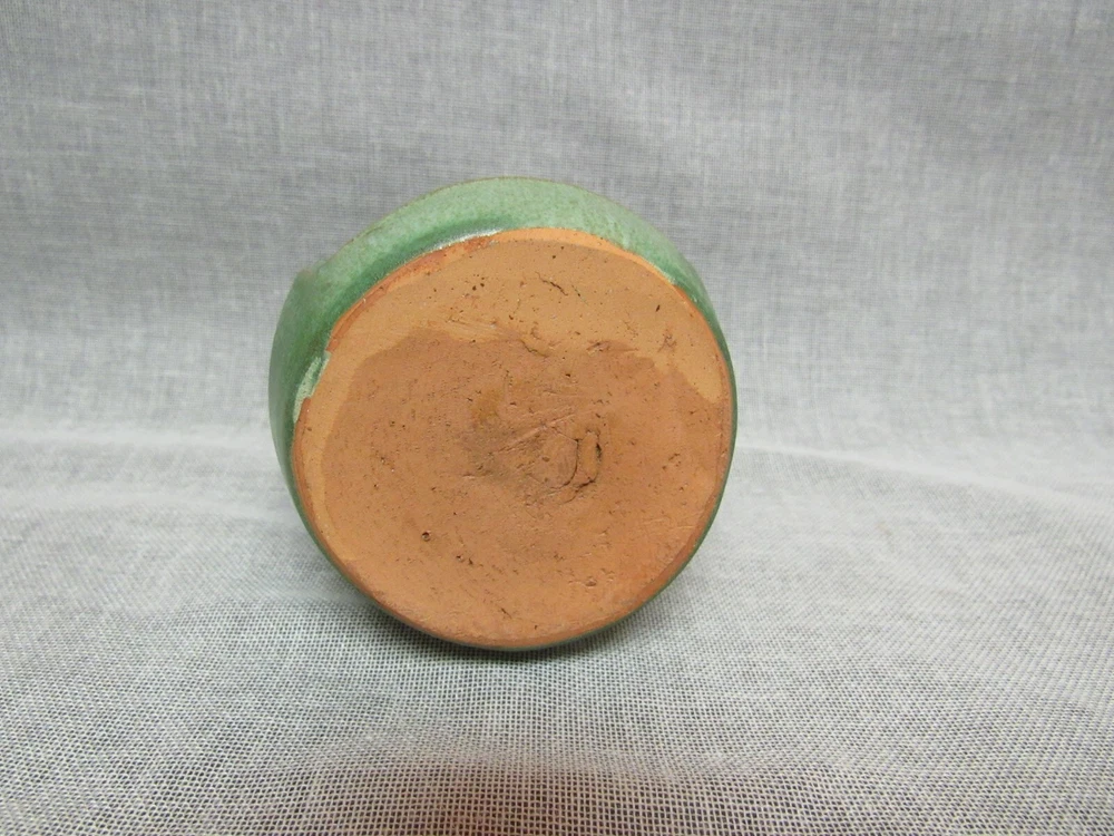 Vintage North Carolina Art Pottery Red Clay Green Glaze Candle Holder Jug Shape