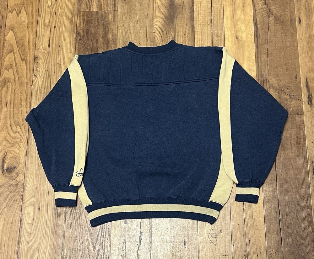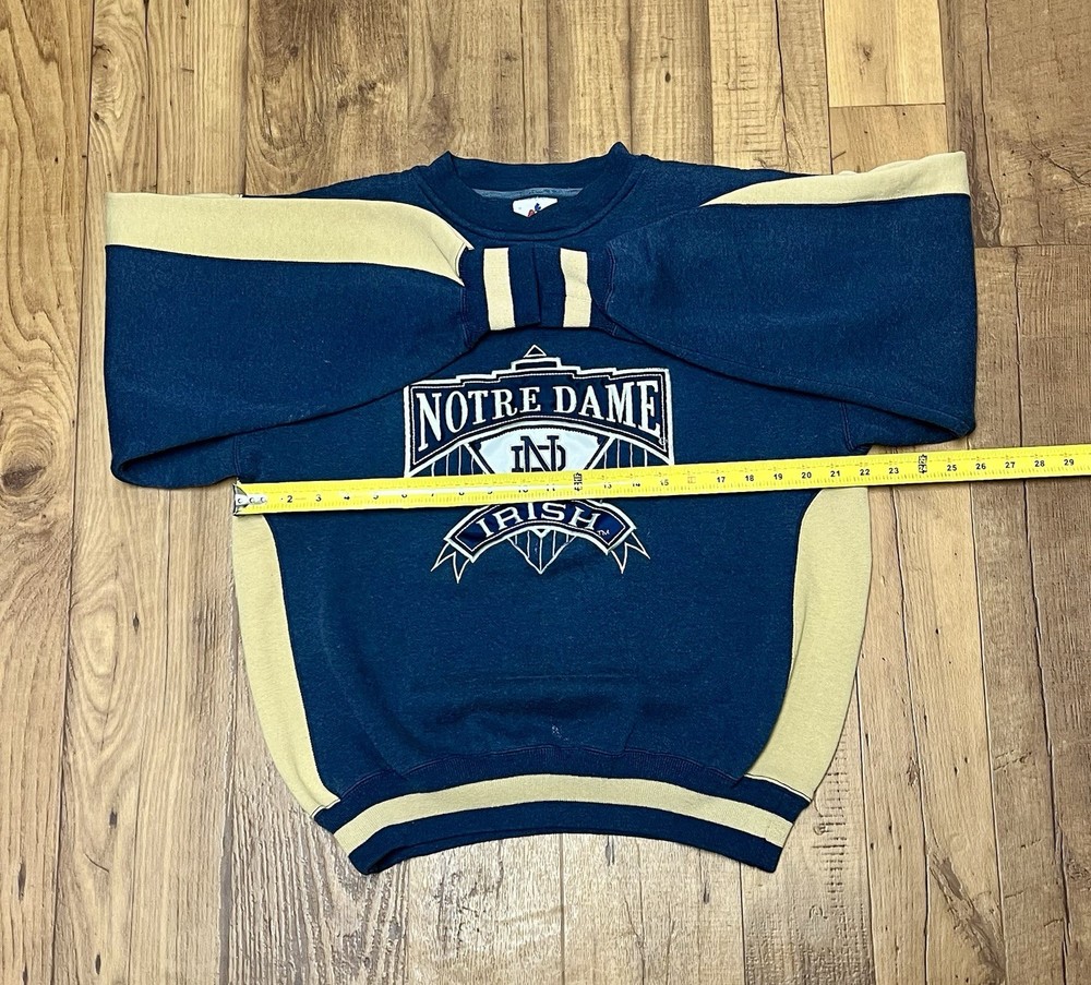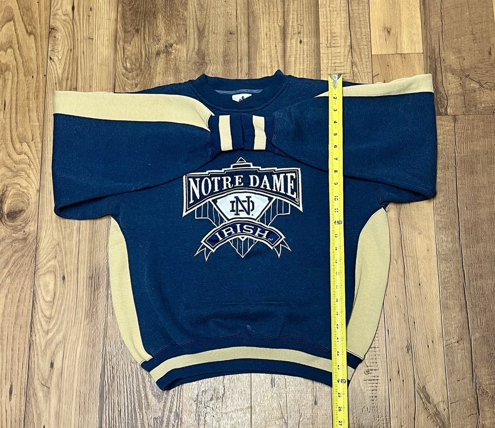 The Vintage “Notre Dame Fighting Irish” Midwest Embroidery Crewneck Sweatshirt is a stylish and nostalgic piece of activewear for men. This sweatshirt features a solid multicolor design with embroidered accents, showcasing the NCAA theme of basketball and football. Made of a blend of polyester and cotton, this heavyweight sweatshirt is machine washable and perfect for all seasons, making it a versatile addition to any wardrobe. With a regular fit and a crew neck, this pullover sweatshirt is ideal for both casual wear and athletic activities.