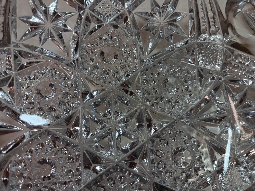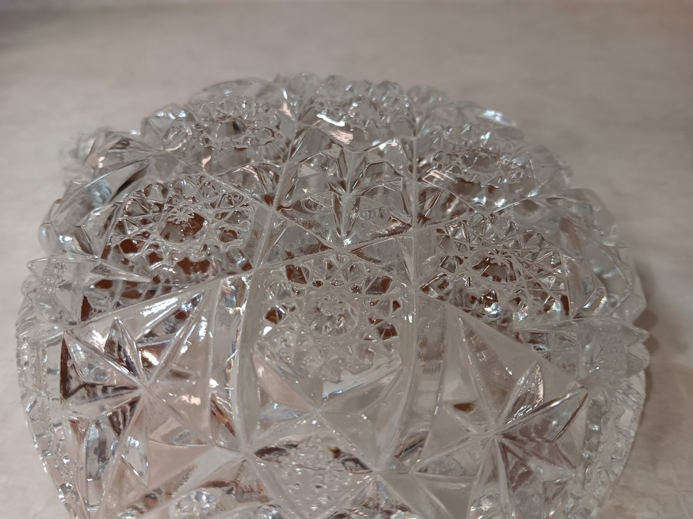 $ 5.2Leaded Glass Etched Candy Dish 9 Inch Wide 5 Inch Tall