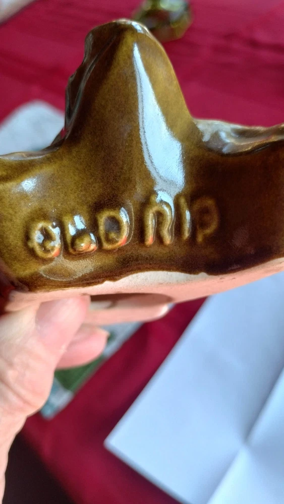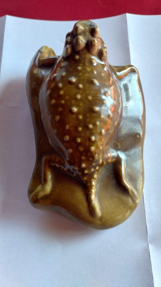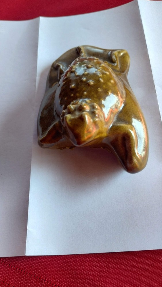 This is a vintage, 'OLD RIP', art pottery horned toad paperweight. Marked something Webster on the bottom. Measures about 4" long, 2.5" across and 2" high. Green colored. No chips nicks or cracks. No reasonable offers refused. Thank you for looking.
