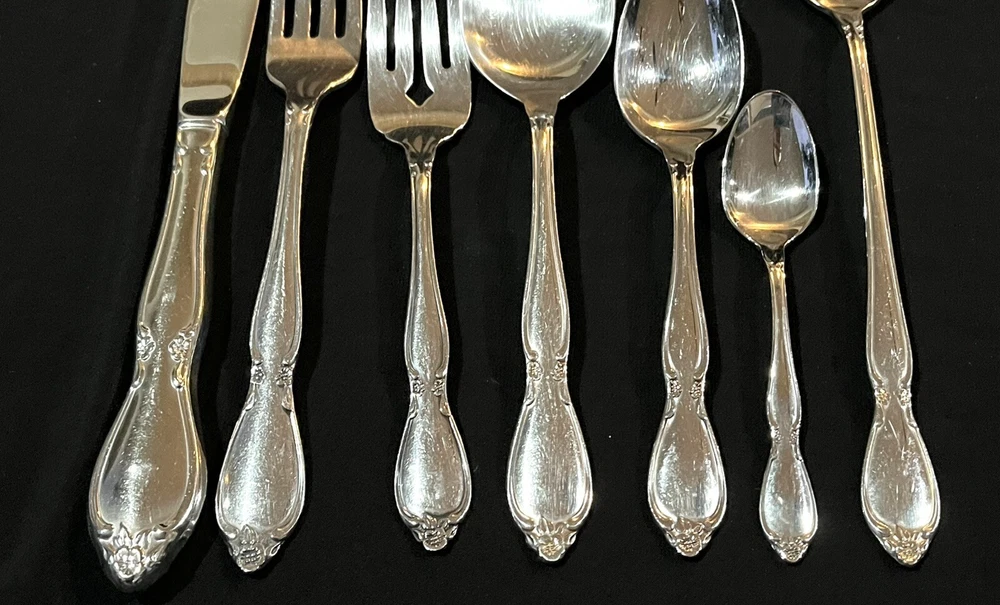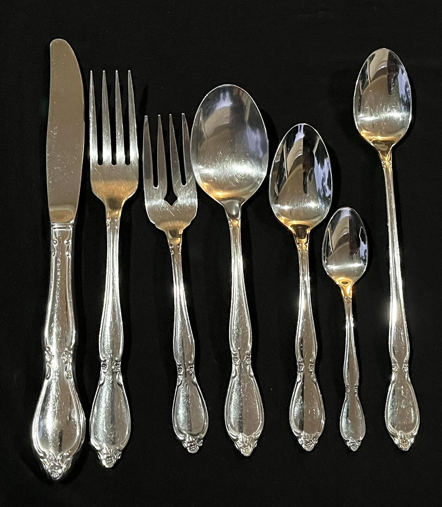This listing is for 109 pieces Oneida "Chatelaine" design stainless steel flatware lot. These are in contemporary style and made in the U.S.A. in the 1990's. Marking of "ONEIDA COMMUNITY STAINLESS " on the back side, knives have no marking. • Dinner Knife - 14 • Dinner Fork - 14 • Salad Fork - 14 • Table Spoon - 14 • Tea Spoon - 14 • Iced Tea Spoon - 14 • Demi Spoon - 12 • Soup Ladle - 1 • Serving Fork - 1 • Serving Spoon - 4 • Pierced Serving Spoon - 2 • Butter Knife - 1 • Sugar/Jam Spoon - 1 • Large Casserole Serving Spoon - 3 Total: 109 pieces The weight for this lot is about 10 lbs These are in silver-tone stainless steel flatware. Any other colors or tone are just light reflection. These are previously owned and in excellent used condition as shown. No issue I need to mention. A $1 bill is placed for size reference and not included. I do not wish to take return, so please review photos and ask all the necessary questions before purchasing this item. * * * Non-smoking environment! * * *