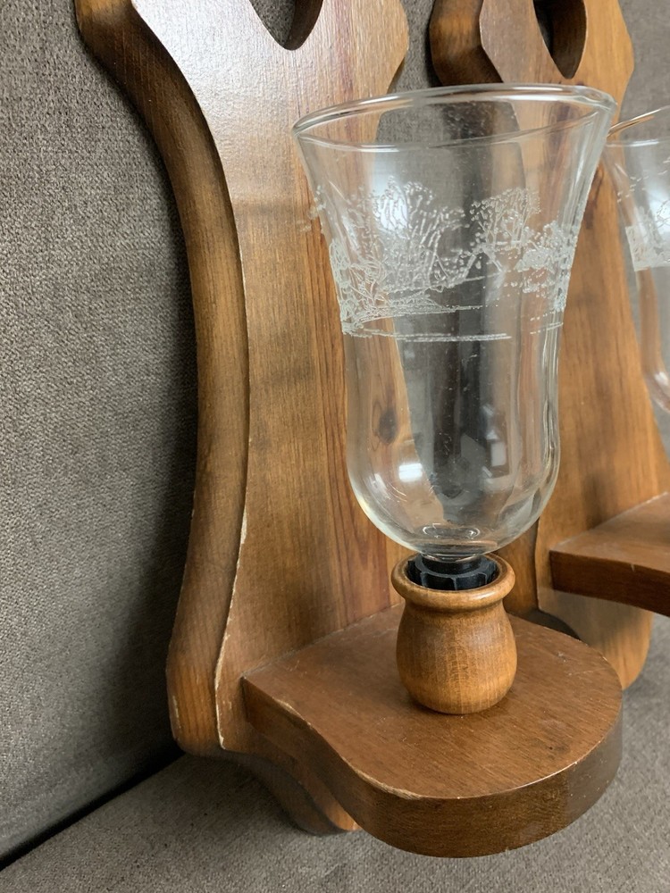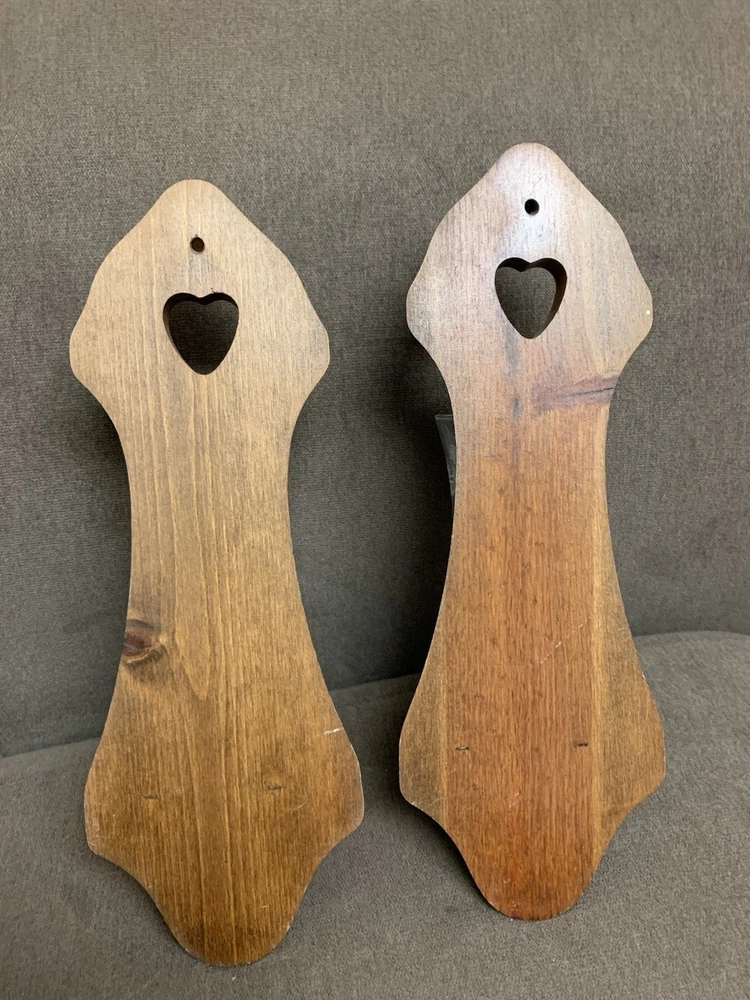 This vintage-inspired Oak Wood Wall Sconce Candle Holders features a charming heart-shaped design, perfect for adding a touch of rustic country farmhouse decor to any room. Handmade in the United States with a wood-finished oak base and glass votive, these candle holders are suitable for indoor use and can be cleaned with a damp cloth. Ideal for all occasions, these versatile sconce candle holders are a unique and original addition to any home, especially for those who appreciate farmhouse-style aesthetics and unique decorative collectibles.
