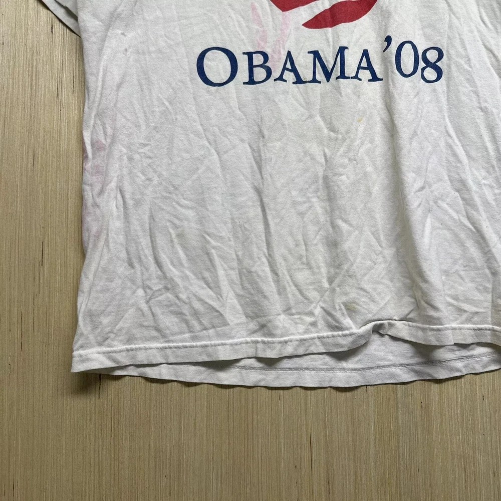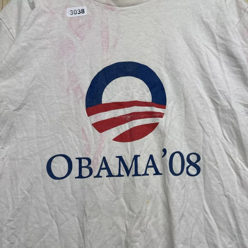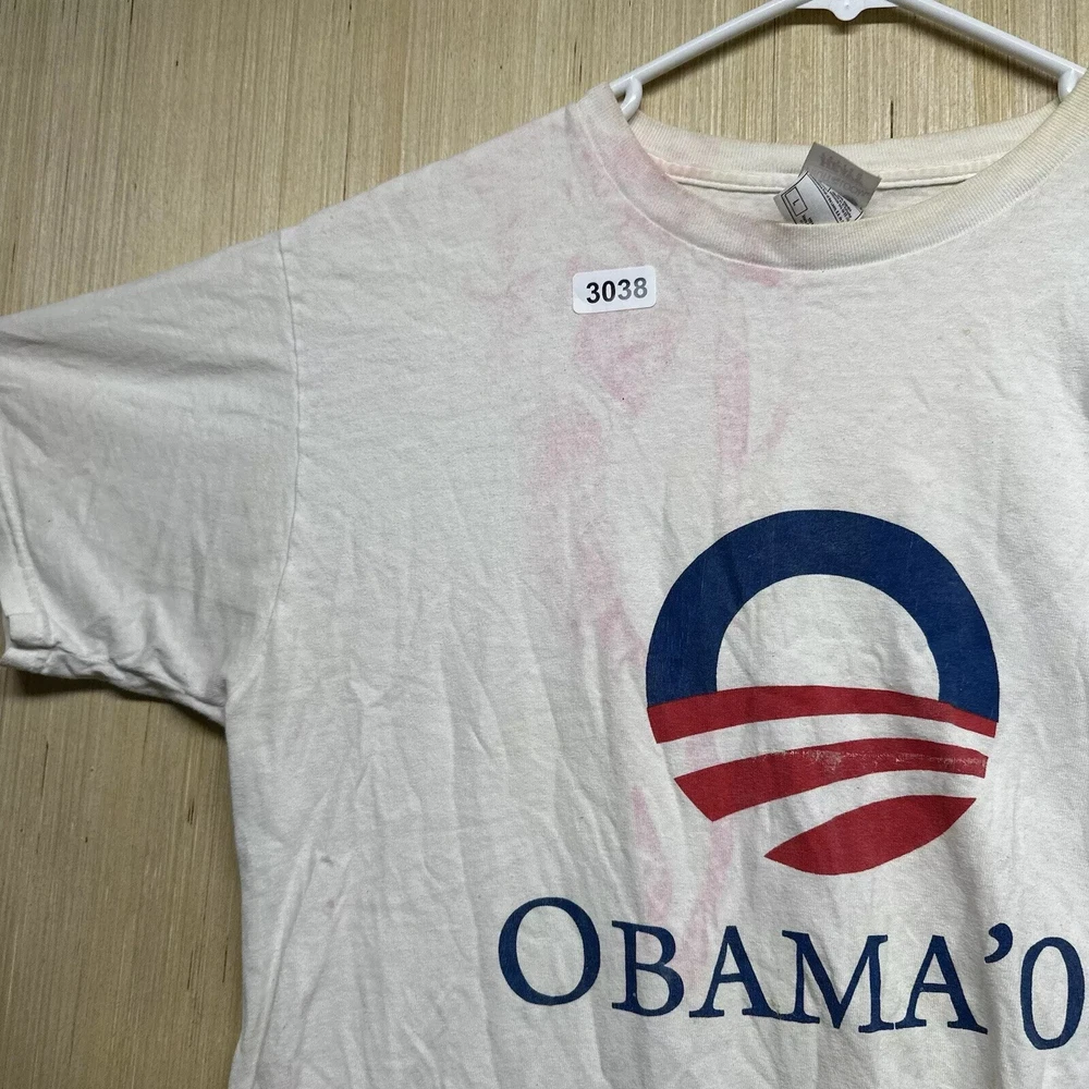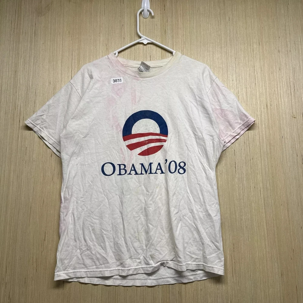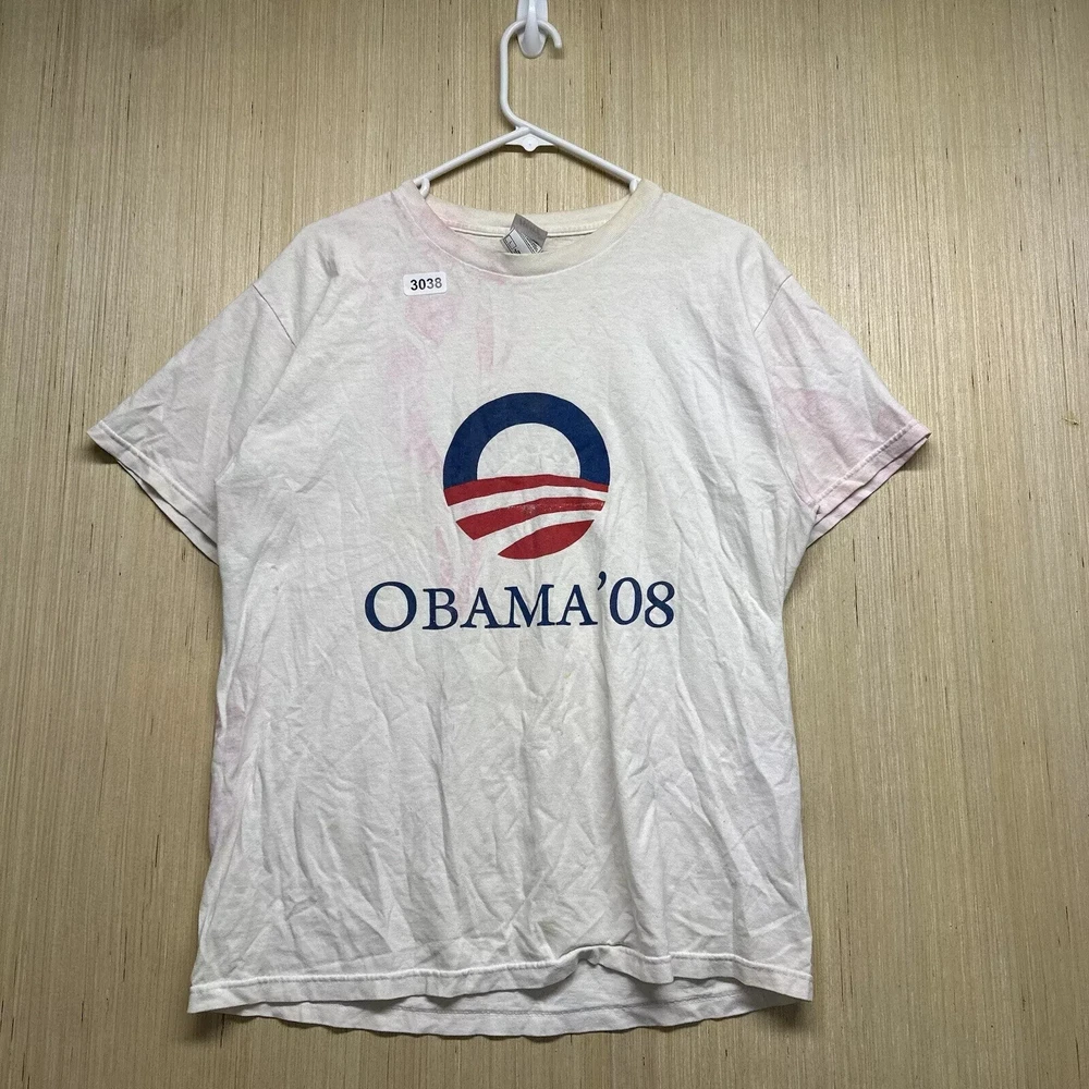 Vintage Obama Shirt Adult Large White Short Sleeve Men’s Graphic Print 08 Y2K