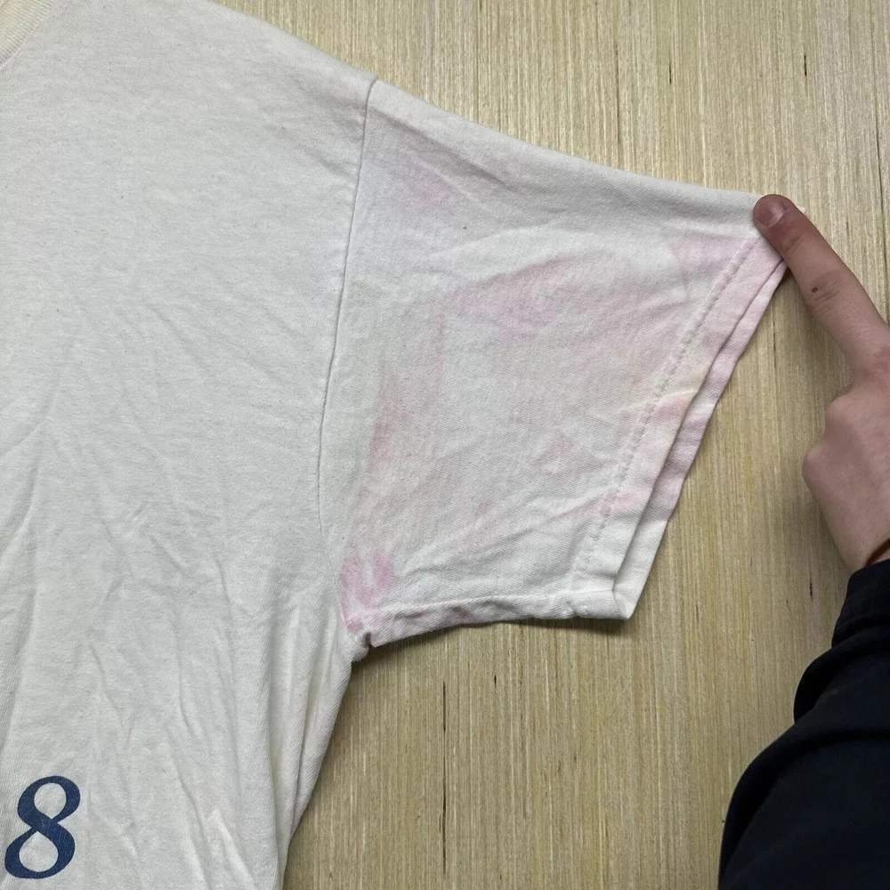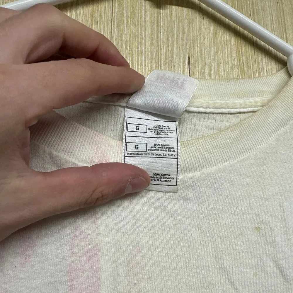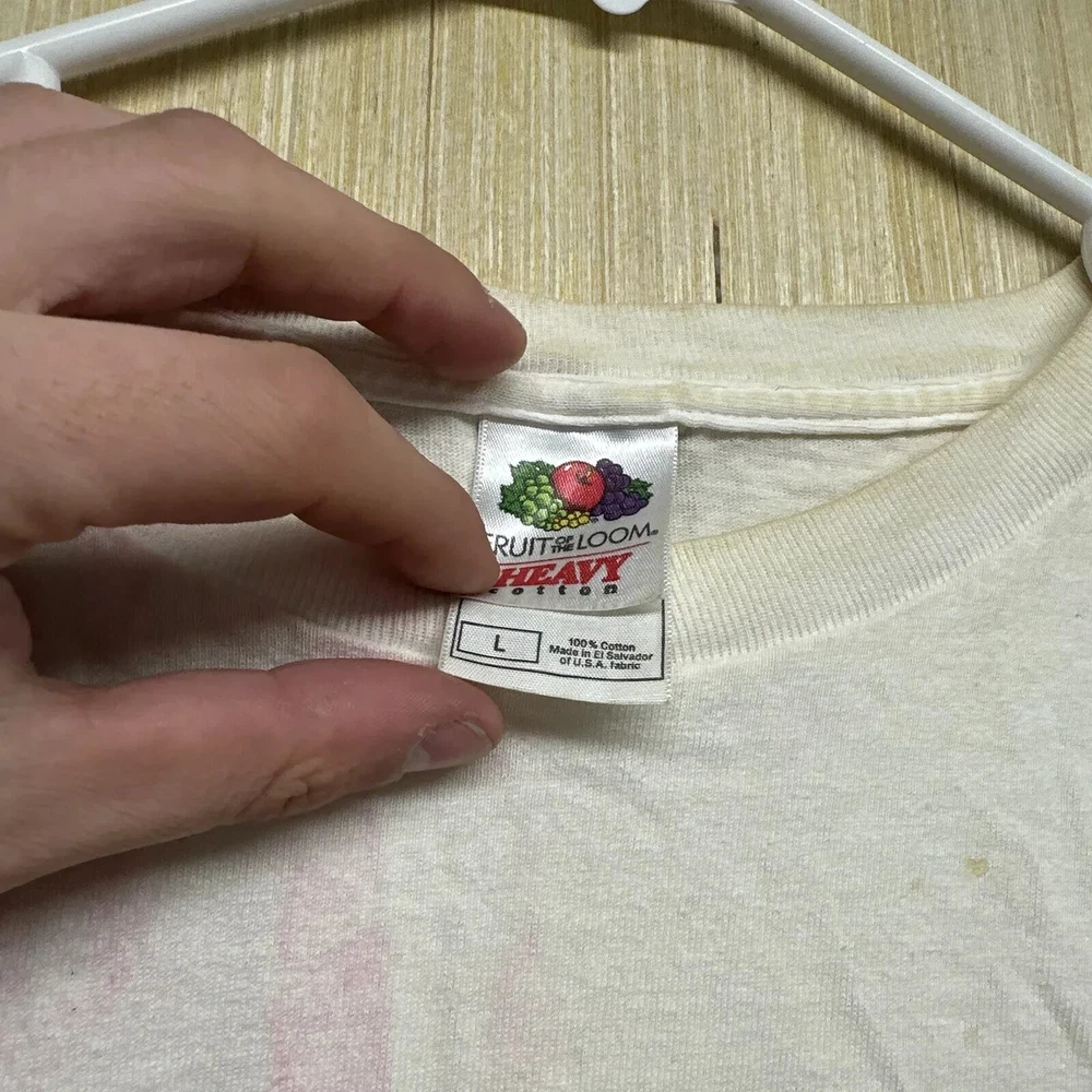 Brand: Fruit of the Loom Size Type: Regular Vintage: Yes Personalize: No Country/Region of Manufacture: United States Color: White Character: Blue Pattern: Graphic Print Neckline: Crew Neck Year Manufactured: 1990-1999 Fit: Regular Features: Adjustable, All Seasons, Breathable, Double-Sided, Full Zip, Hooded, Lightweight, Limited Edition, Preshrunk, Quick Dry, Stretch Department: Men Accents: Button, Embroidered, Logo Fabric Type: Knit Handmade: Yes Type: T-Shirt Sleeve Length: Short Sleeve Material: Cotton, Cotton Blend Character Family: Free!, Friends Season: Fall, Spring, Summer, Winter Size: L Theme: 90s, Classic, Hip Hop, Hippie, Logo, USA, Retro
