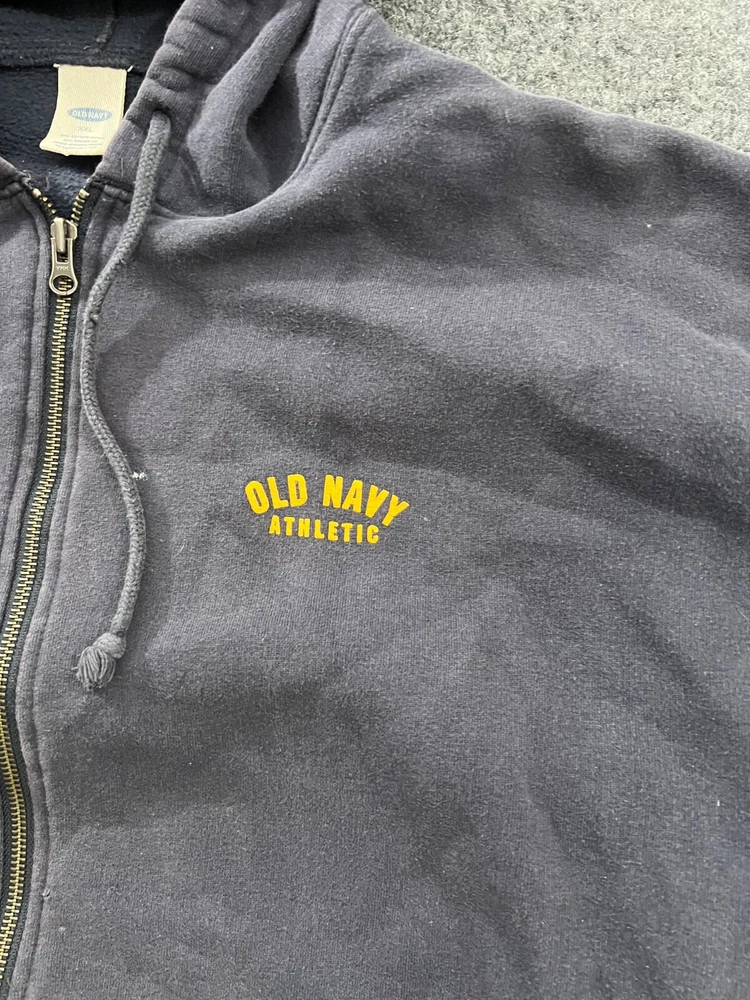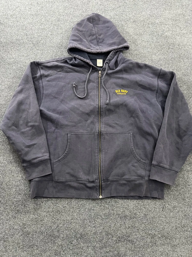 Vintage Old Navy Athletics Men's 2XL Blue Hoodie Sweatshirt Full Zip Y2k