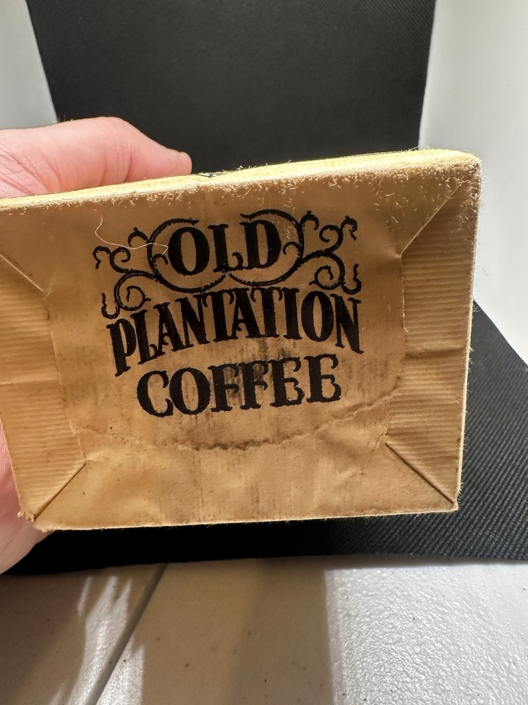 Discover a piece of Americana with the Vintage Old Plantation Coffee Steel Cut Product Bag, a charming relic from Terre Haute's past. The bag features classic branding that captures the essence of the era's coffee and tea theme, showcasing the rich history of Black Americana. Crafted in the United States, this original piece bears the distinct character of a bygone era, making it a unique find for collectors and enthusiasts alike. Its robust design and timeless appeal are a testament to the enduring legacy of Old Plantation's coffee heritage.