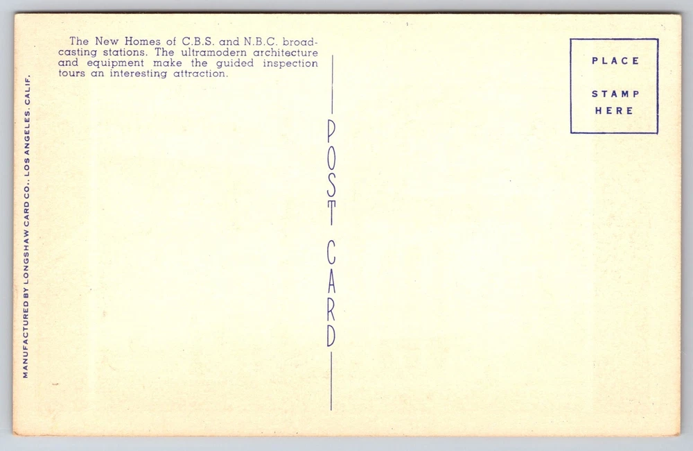 Welcome to People and Places of The Past! Come take a look into generations past of real people and places throughout the world that were photographed by many great people and studios. Here you will find unique antique photographs, real photo postcards, and other vintage postcards that can be used for collecting, genealogy, or crafting. Many of these historic photographs are rare, hard to find, and are one-of-a-kind images that cannot be found any where else. Please contact us if you have any questions about our listed images. Thank You! Hollywood CA-California, Radio City, Studios Of CBS And NBC, Vintage Postcard This vintage, antique post card is in good, unposted condition. Please see high resolution scans of the front and back of this card closely for detailed cosmetic condition. This post card measures 3.50 inches x 5.50 inches. Vintage post cards can show normal signs of wear associated with an old post card including folds, creases, holes, stains, rips, scratches, worn edges, fading, crackling, handwriting, postage cancellations, postage stamps, being put into or taken out of old postcard albums, or other damage. They will have imperfections from being handled or from being mailed, which gives them character and history. Please visit our ebay store for more unique and one-of-a-kind images of People and Places of The Past! We try our best to represent the item in the images as accurately as we can. However, due to variations in color from image scanners, computer screens, and cell phone displays, the color may be slightly different than the color of the actual product. This post card will be shipped to you packaged well inside of a clear plastic sleeve inside of a rigid stay flat envelope to keep the card flat and to protect the card during shipping to preserve this historic image. Shipping within the United States. Your post card will be delivered to the post office the same day or the next business day after receiving payment. Returns are accepted within 30 days. Thank You for visiting People and Places of The Past!