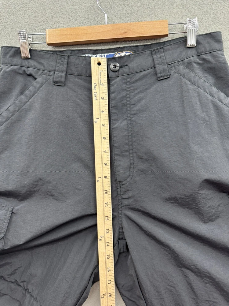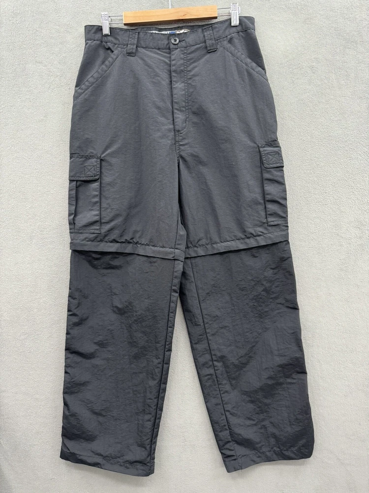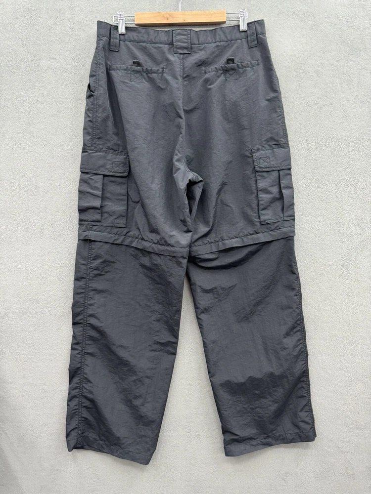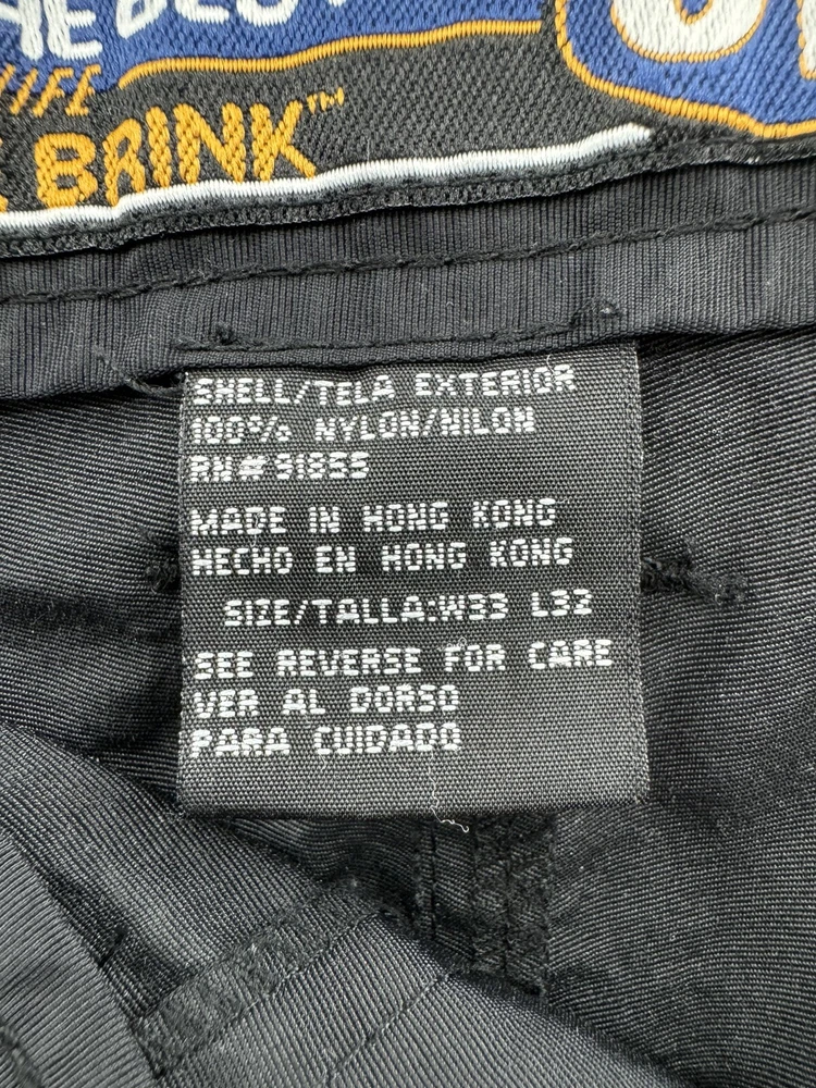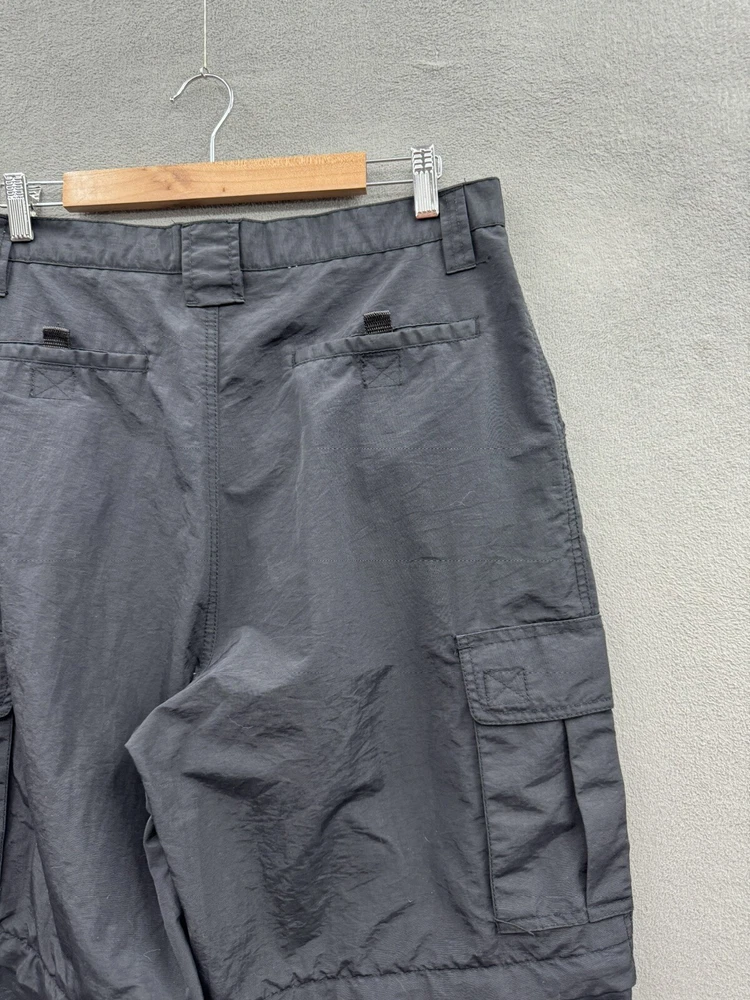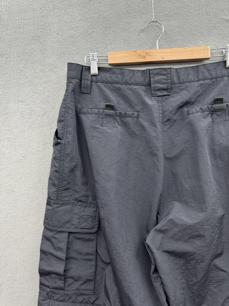 Elevate your casual style with these On The Brink cargo pants. The black nylon material gives a grungey outdoor vibe, perfect for skaters and outdoor enthusiasts. The pants feature a solid pattern, high-rise waist, and wide-leg fit with a relaxed closure for easy wear. These versatile pants have a cargo pocket for added convenience and come in a size 33 waist and 32 inseam. The flat front and convertible features make them suitable for all seasons, whether it's winter, summer, fall, or spring. Machine washable for easy care, these pants are a must-have for any casual wardrobe.