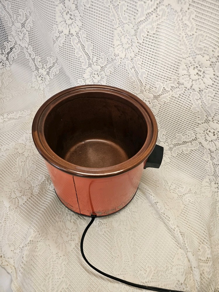 This vintage orange Rival 3100/2 slow cooker has a capacity of 3.5 qt and operates with 120 V of electric power. It features a glass, ceramic, and metal construction with a power of 150 W. The cooker includes a lid and offers 2 settings/programs. Also included are a Good Housekeeping Crockpot & Rival Crockpot Cookbook. tested