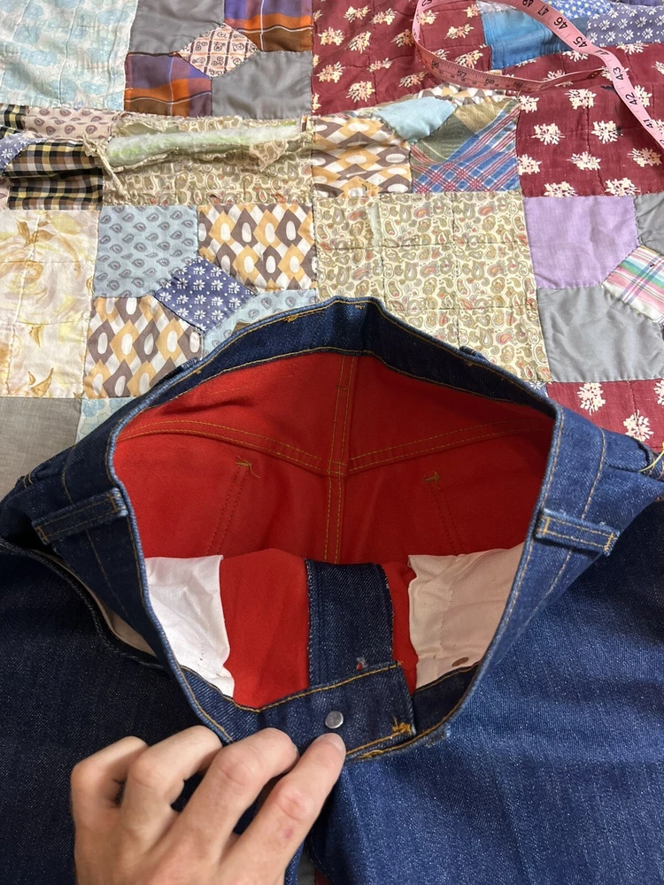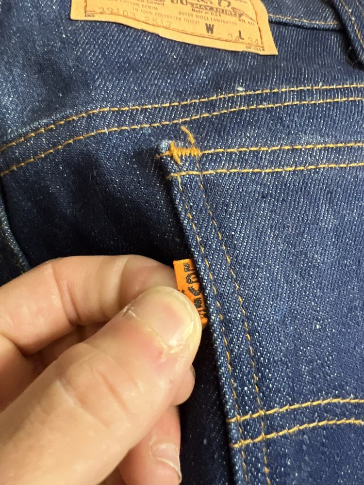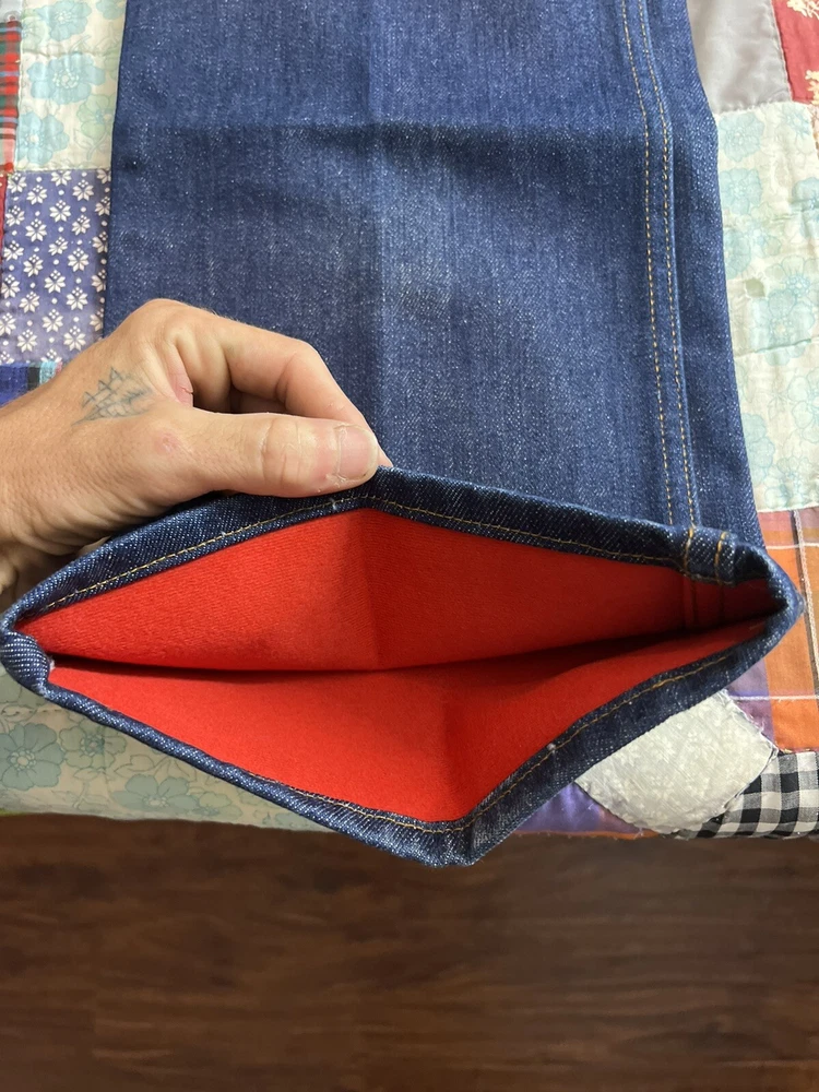 Levi’s Orange tab Red lined fleece maybe ? Denim pants Measurements in photos Measures 32x33 Good fade on back pockets Other then that very good stiff condition basically new Some flaws tho! As pictured INSPECT THE PHOTOS AND ASK ME QUESTIONS THANK YOU.
