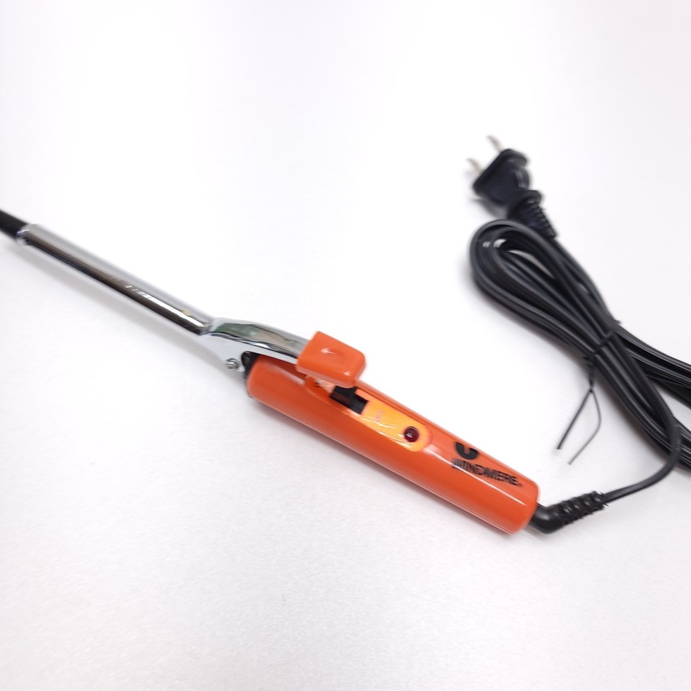 Custom Bundle: No Number of Temperature Settings: 1 Type: Curling Iron Model: Windmere SM-1C/552 Barrel Size: 3/8 in UPC: Does not apply Size: Mini Features: Cool Tip, Indicator Light Power: N/A Color: Orange gtin13: Does not apply MPN: SM-1C/552 Heating Plate Material: Not Specified Material: Metal, Plastic Maximum Temperature: N/A Hair Type: All Hair Types Power Source: Electric Brand: Windmere
