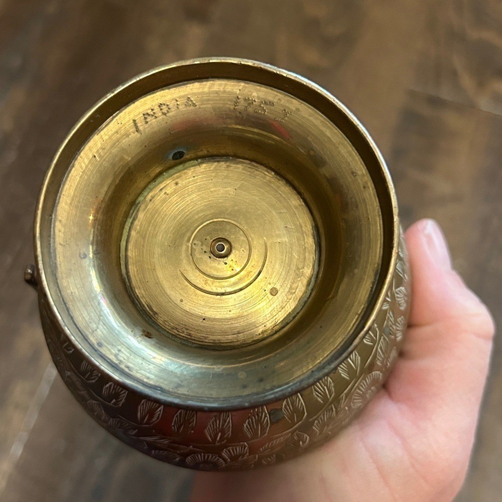 Elegant brass pitcher with intricate designs. Perfect for home decor. Made in India Marked on Bottom