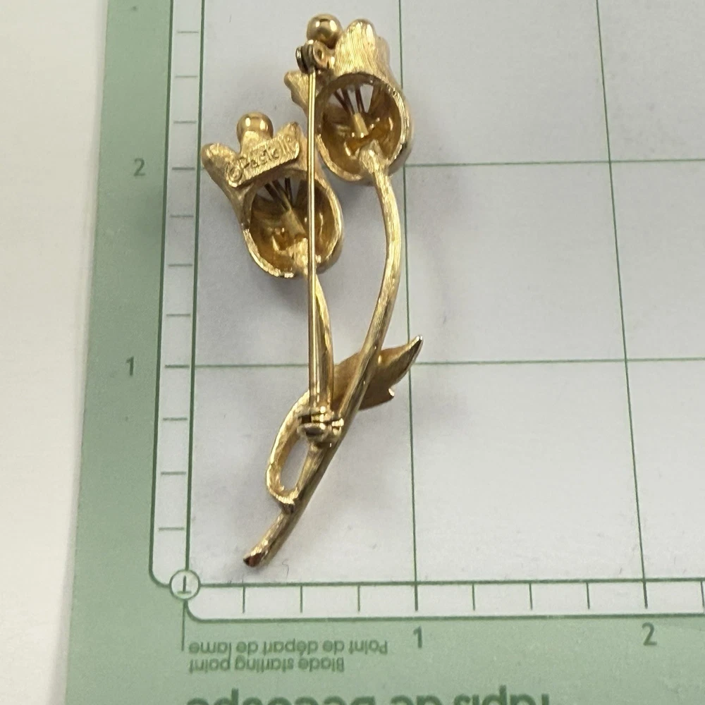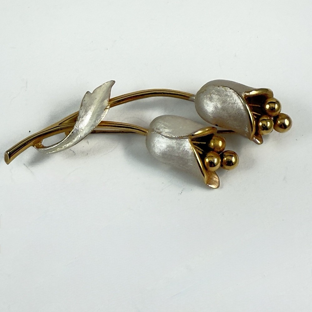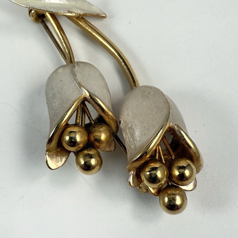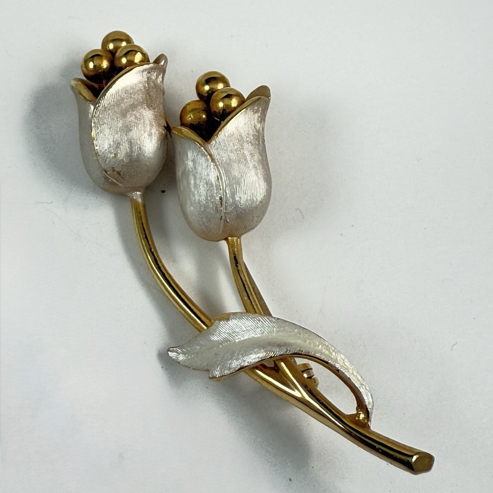 Vintage PASTELLI Signed Tulip Flower Gold Silver Tone Brooch Pin