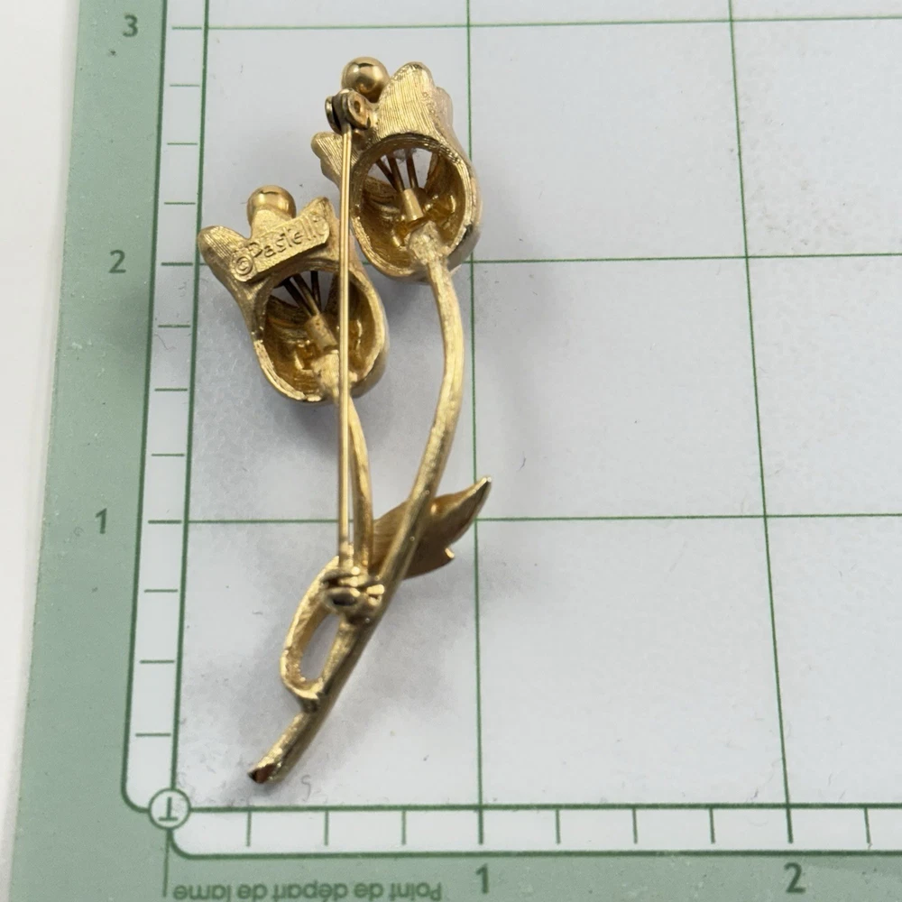 Vintage PASTELLI Signed Tulip Flower Flower Gold Tone & Silver Tone Brooch Pin. Pre-Owned Estate Jewelry in Very Good Condition. Ready to wear, give as gift or add to a collection. Our Vintage items are mostly from estate sales and vary in age from 100+ years old to more modern pieces. Please use your judgement. Items are photographed on a measuring matte with one-inch squares to give you an idea of size. Any photography props / holders you see are not included.