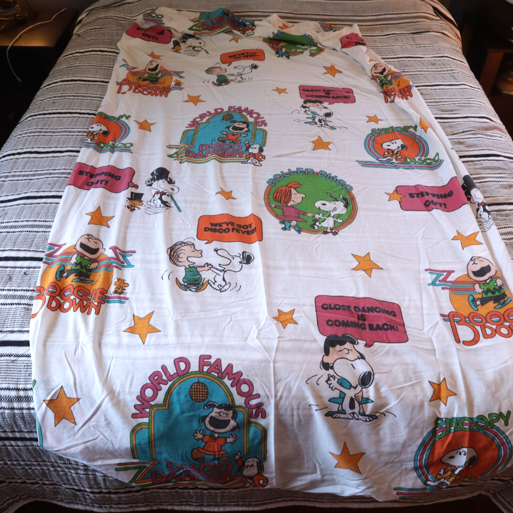 Vintage PERMA Prest Peanuts Disco Fever Twin Sheet Set Sears Snoopy - Flat and Fitted Sheets. No Pillow Cases All items come from a smoke free home. If you have any questions please ask and I will get back to you immediately. Thank for looking and please check out my other listings.