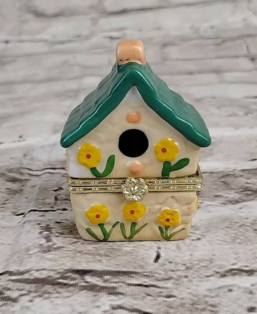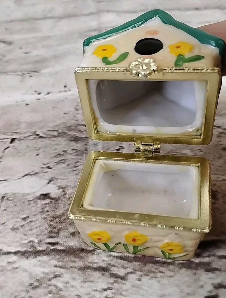 This vintage trinket box features a beautiful flower pattern with a wildlife theme, perfect for collectors and enthusiasts alike. The box is made of high-quality porcelain with a glossy finish, and comes boxed for safekeeping. It is ideal for storing small items and trinkets, and will add a touch of charm to any collection. The box is hinged and has a unique bird design, making it a great addition to any decorative collection.