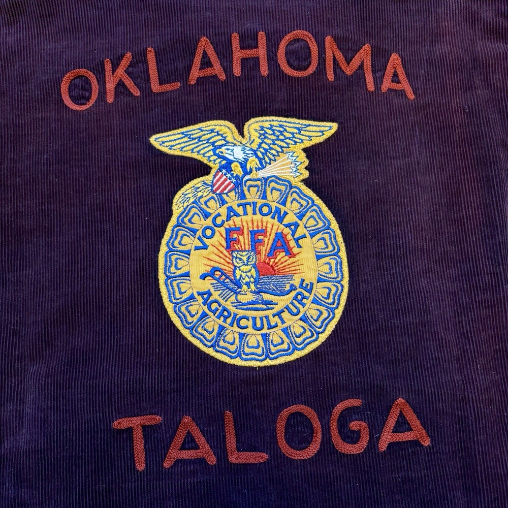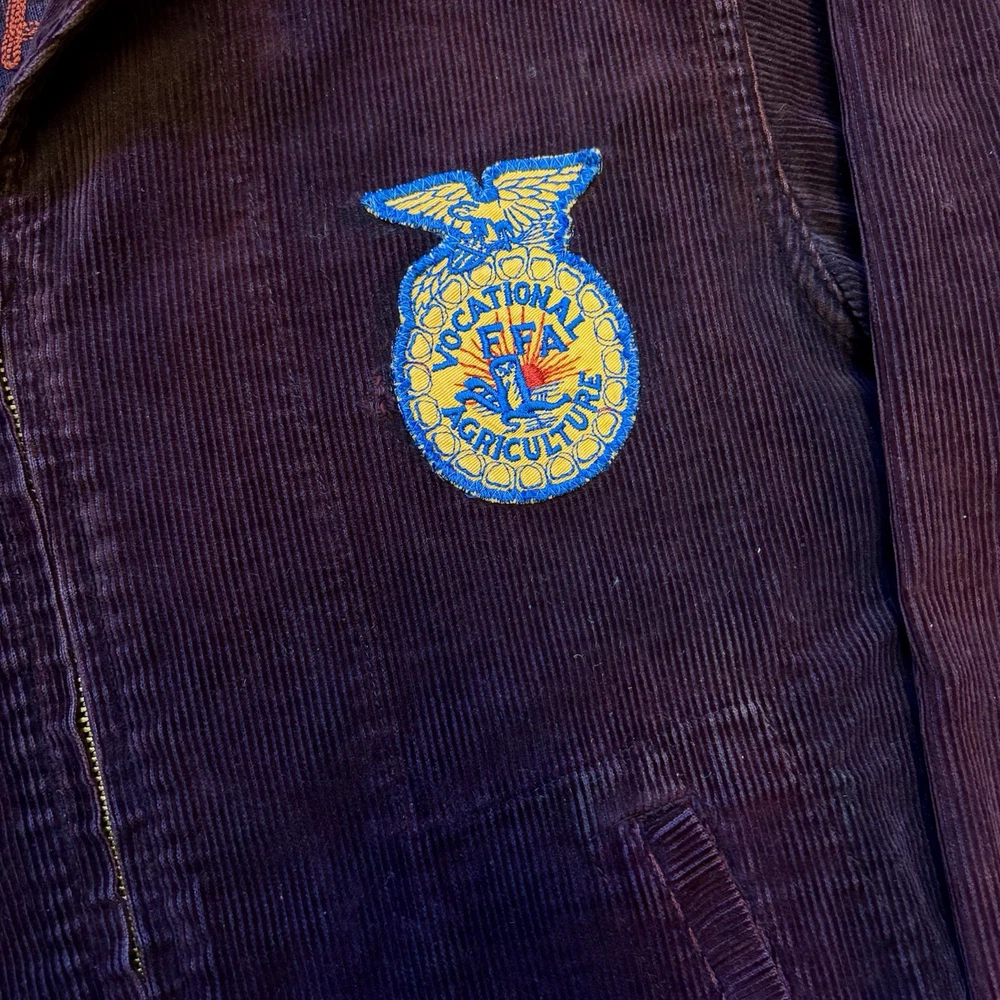 Beautiful and one of a kind purple ffa jacket with red chain stitching from the 50s. See pictures for condition. Message with any questions. Measures 23x23.5