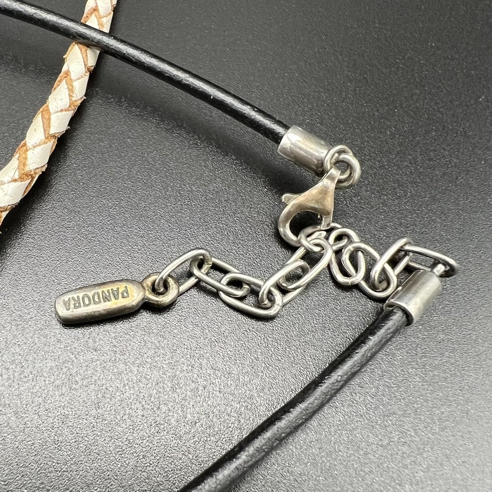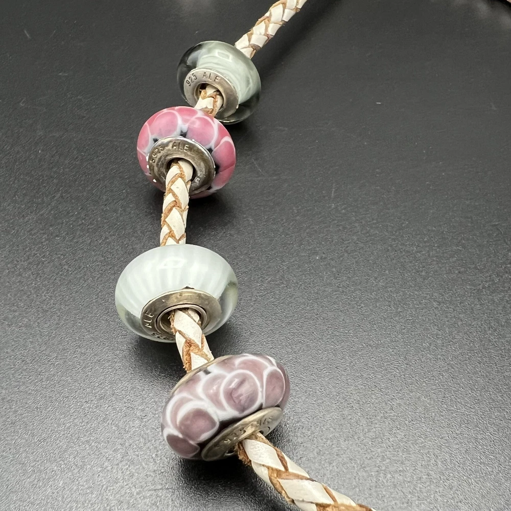Vintage Pandora Sterling Silver Murano Leather Set Collection