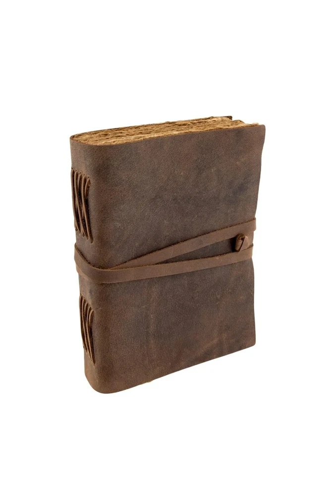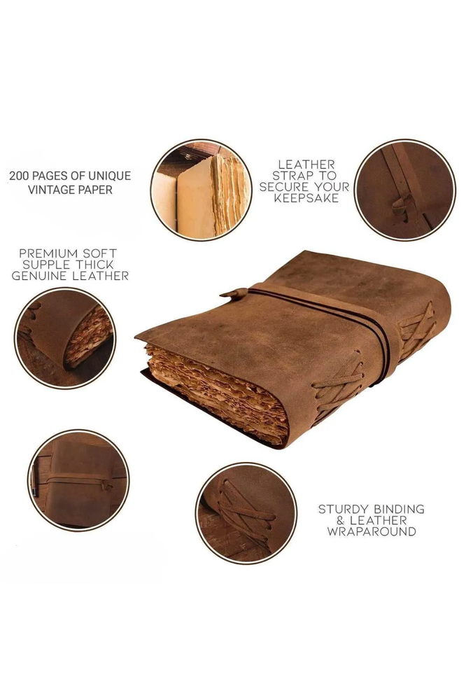 This souvenir book made of real leather: offers a soft-touch exterior with a privileged, natural and aged appearance. The cover and edges of the notebook are specially embroidered. The product is 15x20 cm in size. Since the product pages are completely handmade, the appearance of the pages differs from each other. 200 pages consist of 100 sheets. It can be written with any pen. It is produced using traditional techniques passed down from generation to generation in India.100% handmade paper with an old look combined with the beauty of aged leather sewn by craftsmen by hand offers a keepsake you will keep forever. A perfect companion for diary lovers and those who love products with a rustic look, this product gives the feeling of owning a historical artifact that is hundreds of years old.