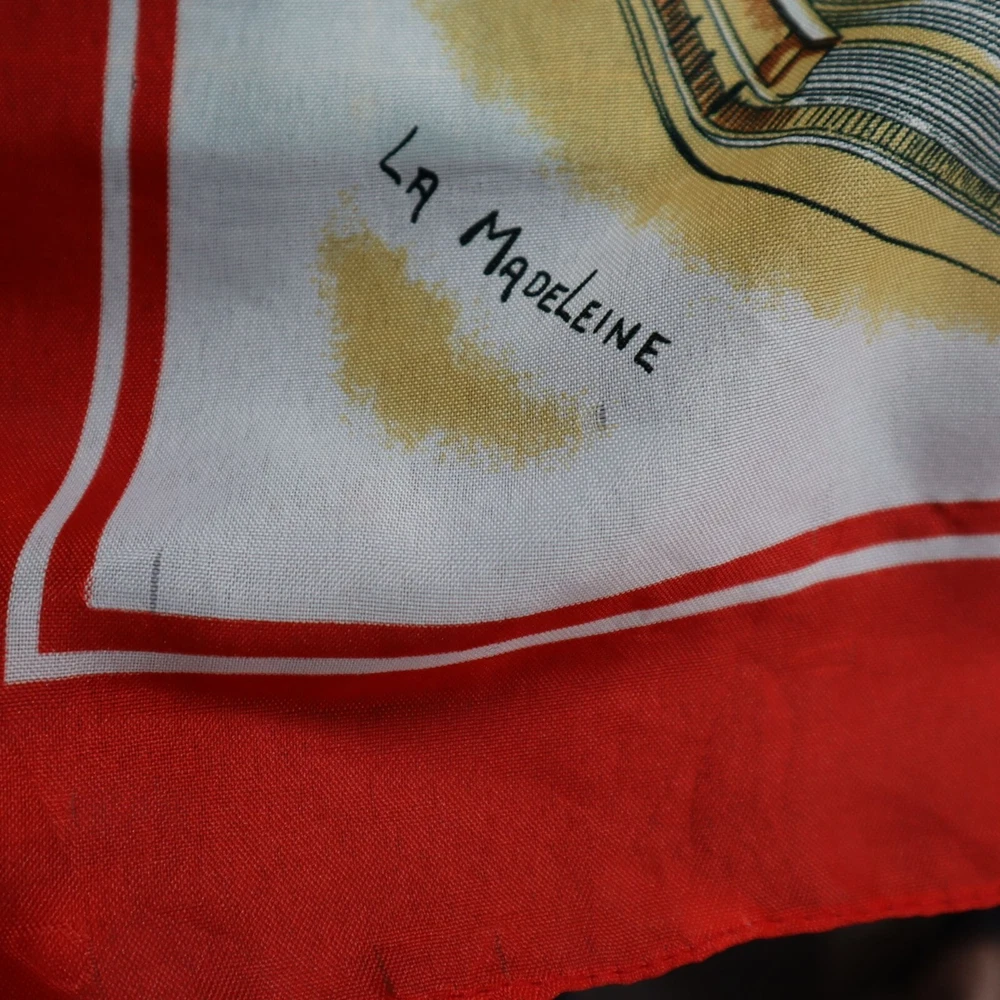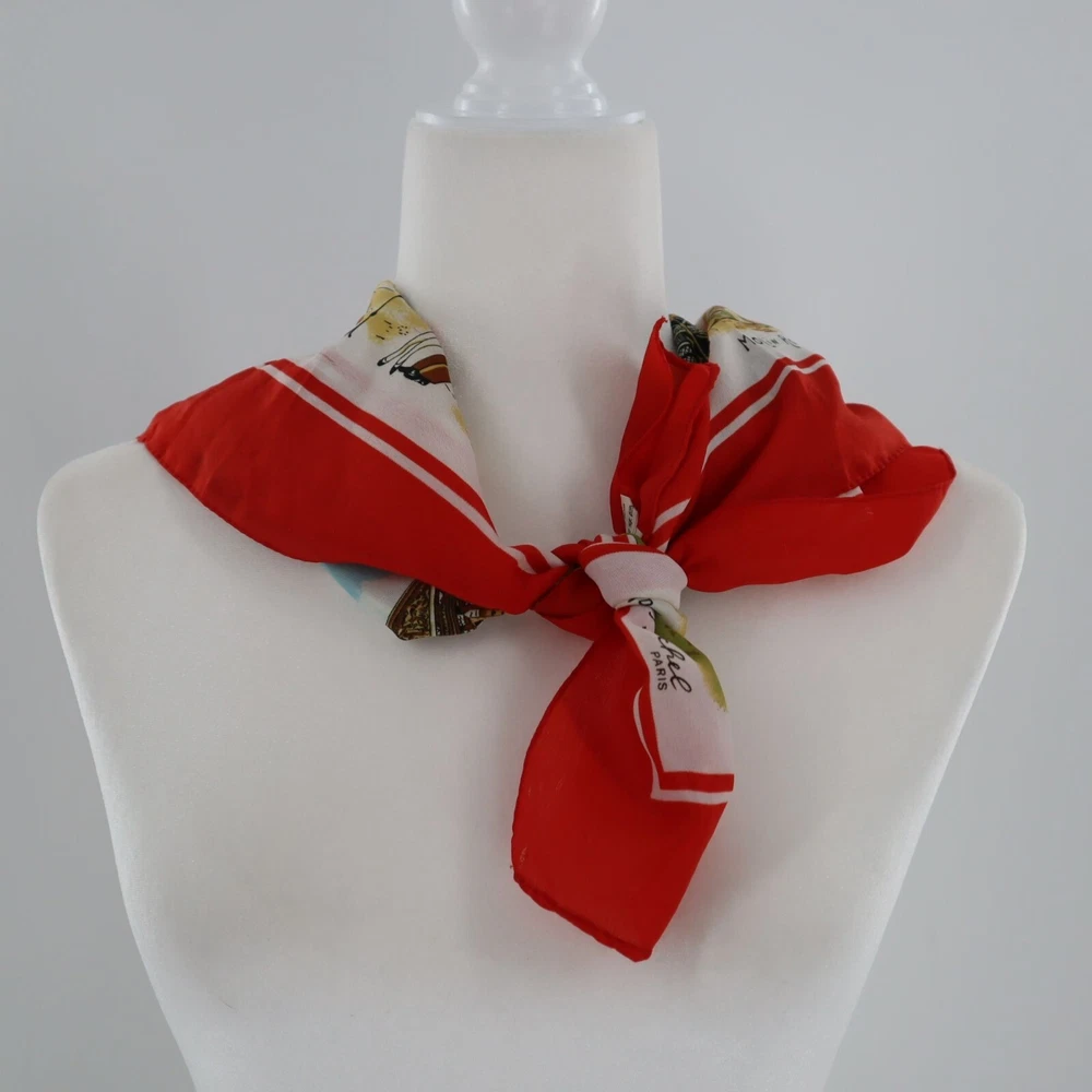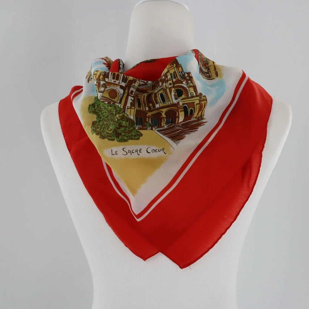 Vintage Paris Eiffel Tower Landmarks Souvenir Scarf 30"x30" Square Retro Travel Wrap yourself in the city of love without getting on a plane. This scarf brings Parisian charm to your neck, minus the baguette crumbs. • Features Paris landmarks • 100% polyester • Made in Italy • Vibrant red border • Square shape • Lightweight and versatile Measurement : • 30"x30" Square Size: Womens One Size Condition: Pre-Owned Good Shows some wear (threadbareness) when held up to light or looking through as a single layer.