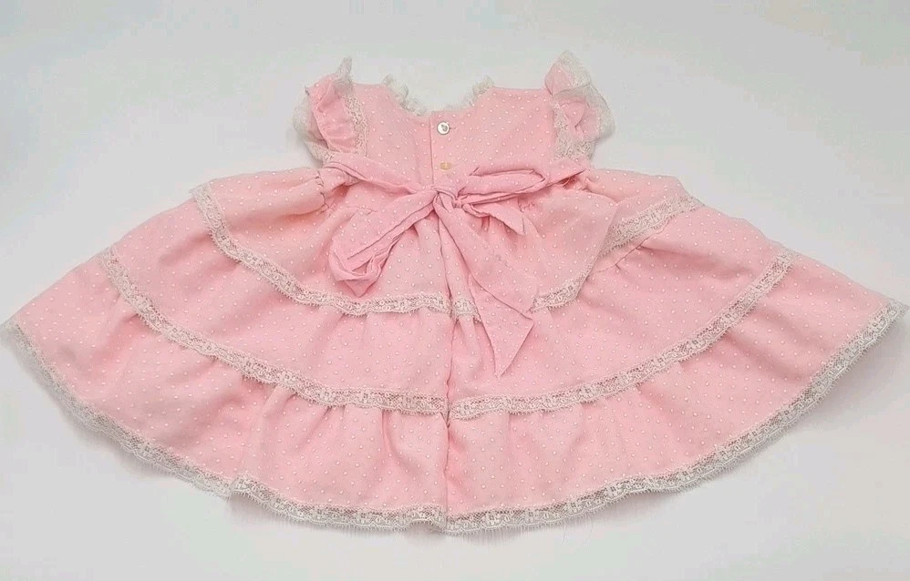 Great condition! Beautiful vintage dress with a very full skirt that could be worn with a crinoline slip or petticoat. Length - 14" Chest (Armpit to Armpit) - 9" Sleeve- 1.5"