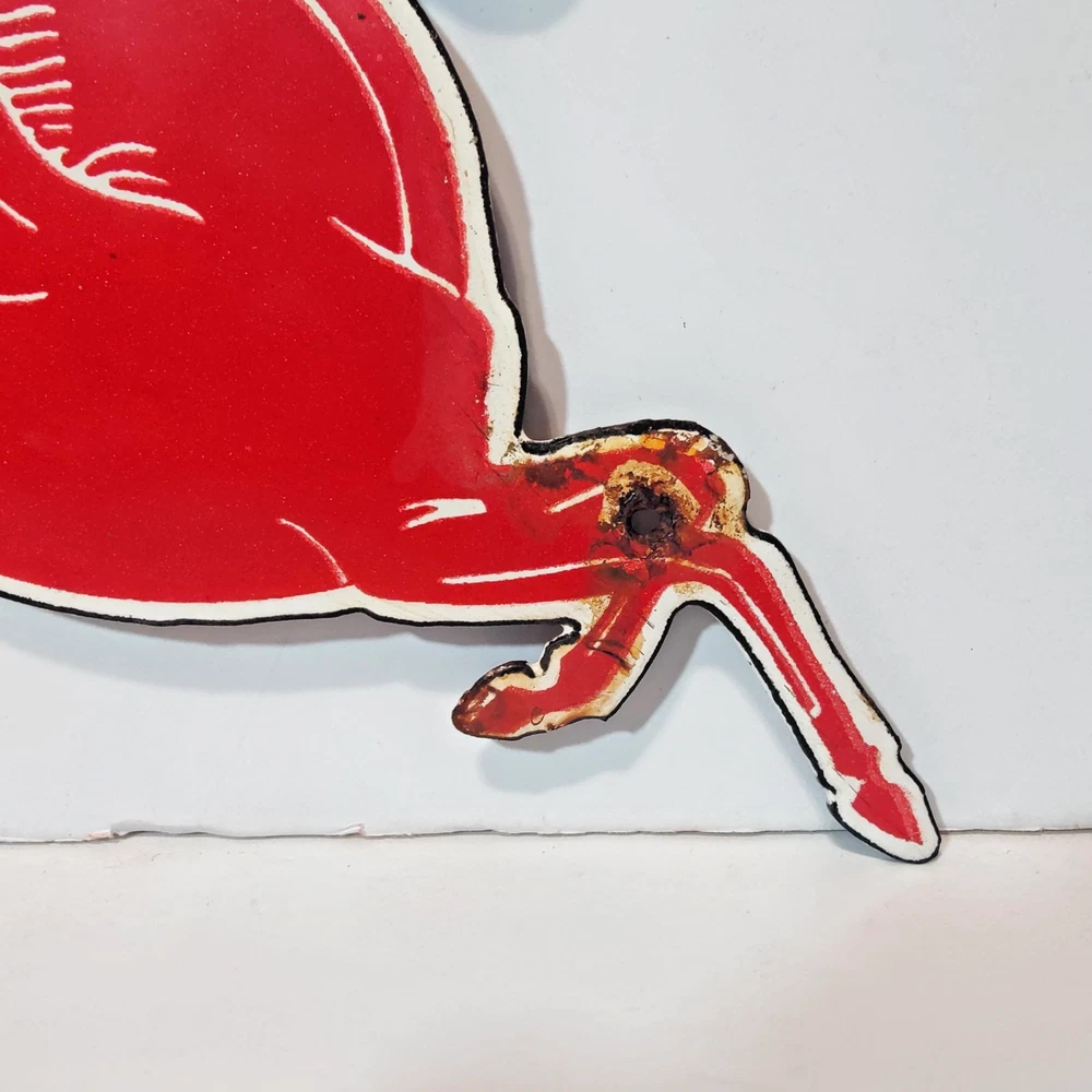 Capture a slice of history with this authentic Pegasus Red Horse Porcelain Enamel Metal sign, measuring a charming 9" x 5" inches. It's a genuine piece of Americana, representing the vibrantGas & Oil theme with its rich, red color and classic design. Originating from the United States, this sign is a testament to the enduring legacy of vintage advertising. Whether you're a collector of original signs or an enthusiast of unique decorative pieces, this sign brings a touch of nostalgia to any space. Its porcelain enamel construction ensures durability, while the intricate details preserve the allure of a bygone era. Display this emblem of the Pegasus brand and add an authentic vintage accent to your home or garage. * Kindly take a close look at all photos - they show the exact vintage sign you'll receive. What you see is truly what you get. * Carefully packed to protect the signs condition and shipped securely with USPS Ground Advantage
