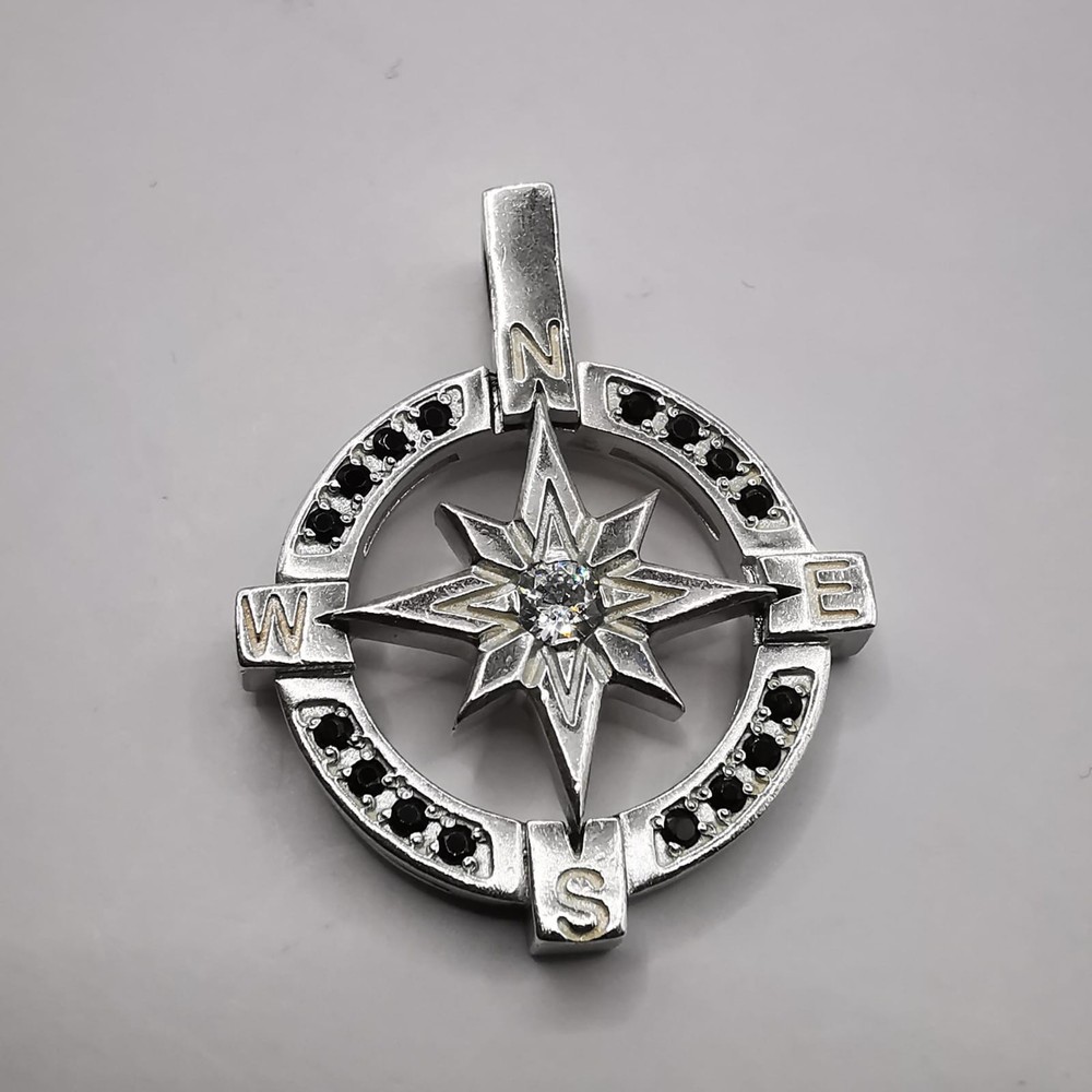 WELCOME Vintage Pendant Wind Compass Rose 925 Sterling Silver Created Zircon Spinel Stones Handmade Description: Metal / 925 Sterling Silver Length Width: 2,5 / 2,5 cm = 0.98 / 0.98 in Weight : 5.47g Stones: Zircon, Spinel. In very good condition, as shown in the photos. "Compass Rose" Pendant a classic symbol used in ancient maps to mark the four directions: North, East (E), South (S), and West (W). Encrusted with black stones and handcrafted, it also exudes an artistic and personal touch, as if it were a unique piece that expresses the wearer's personality. This is truly a masterpiece of presto for the collection. If you find yourself attracted to it, I highly recommend that you buy it now. This is a lovely item to own or to give as a special gift. Please review all photos closely, since they are a large part of my item description (all made with daylight, to show the color as authentic as possible). Shipping I do worldwide shipping by Registered mail with a tracking number. Shipping takes up to 21 business days All additional payments such as tax, are the buyer’s responsibility. Return policy I checked each product and I sell only the best quality ones. In any case, if you are not satisfied with the product please get in touch with me and I will do everything for your satisfaction. You have a 100% guarantee and refund; it is only accepted within 14 days in its original packaging and the condition of the item you bought must remain the same. Buyers pay for shipping and all additional payments such as tax. Feedback: I give immediate positive feedback to buyers as soon as the payment is received for the purchase. In any case, if there is a problem contact me right away before leaving feedback. I will do my very best to resolve any problem that occurs and satisfy you . Thank you for shopping 😊