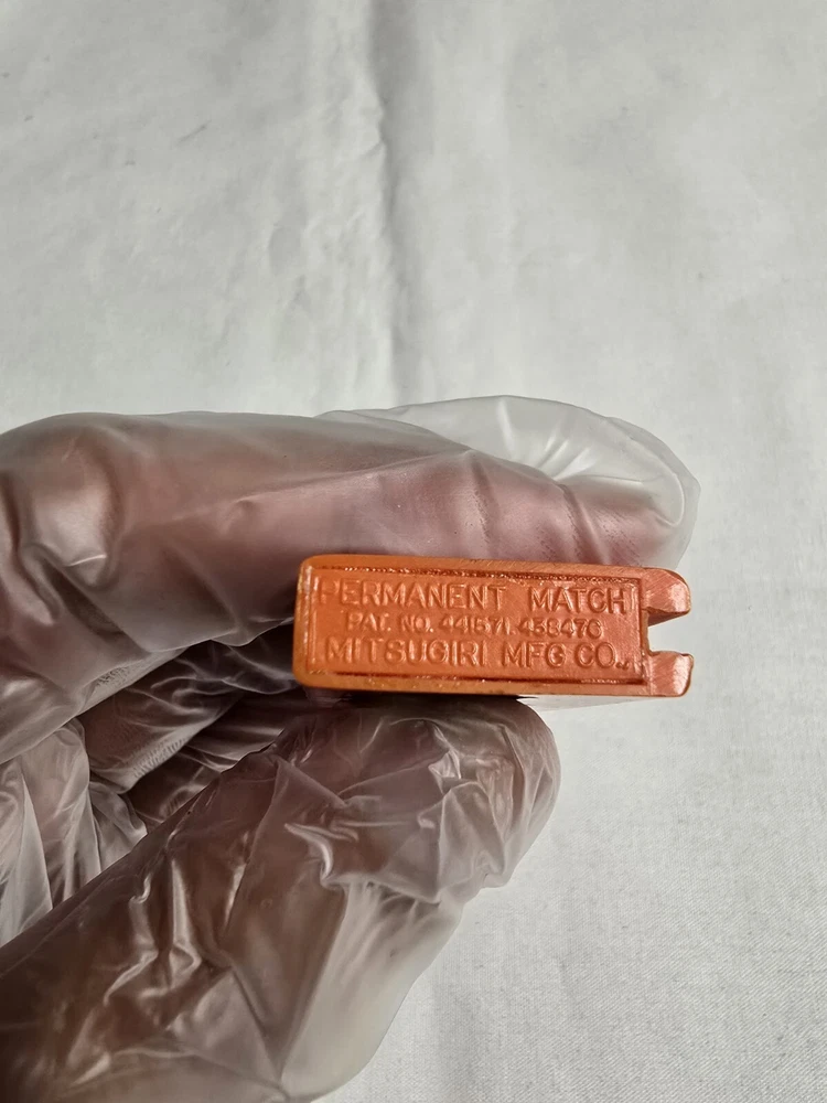 This vintage Permanent Match Mitsugiri Mfg. Co. Striker Lighter is a rare find for any collector of tobacciana and lighters. The orange color of the lighter adds a pop of vibrancy to any collection. The brand, Permanent Match, is known for its quality and durability, making this lighter a reliable addition to any collection. The unique design of this lighter, with its striker feature, makes it a must-have for any serious collector. This item falls under the categories of Collectibles and Tobacciana, specifically under Other Collectible Lighters. Don't miss out on the opportunity to add this rare and fascinating piece to your collection. Lighter is untested. We'll combine shipping. If you are bidding or buying more than 1 item, please message us and let us know that you are still bidding or planning on buying more items. Please look at all the pictures. We took detailed pictures of the item. How the pictures look like is how the item will be shipped. Thank you for looking. Please be sure to check out my other items