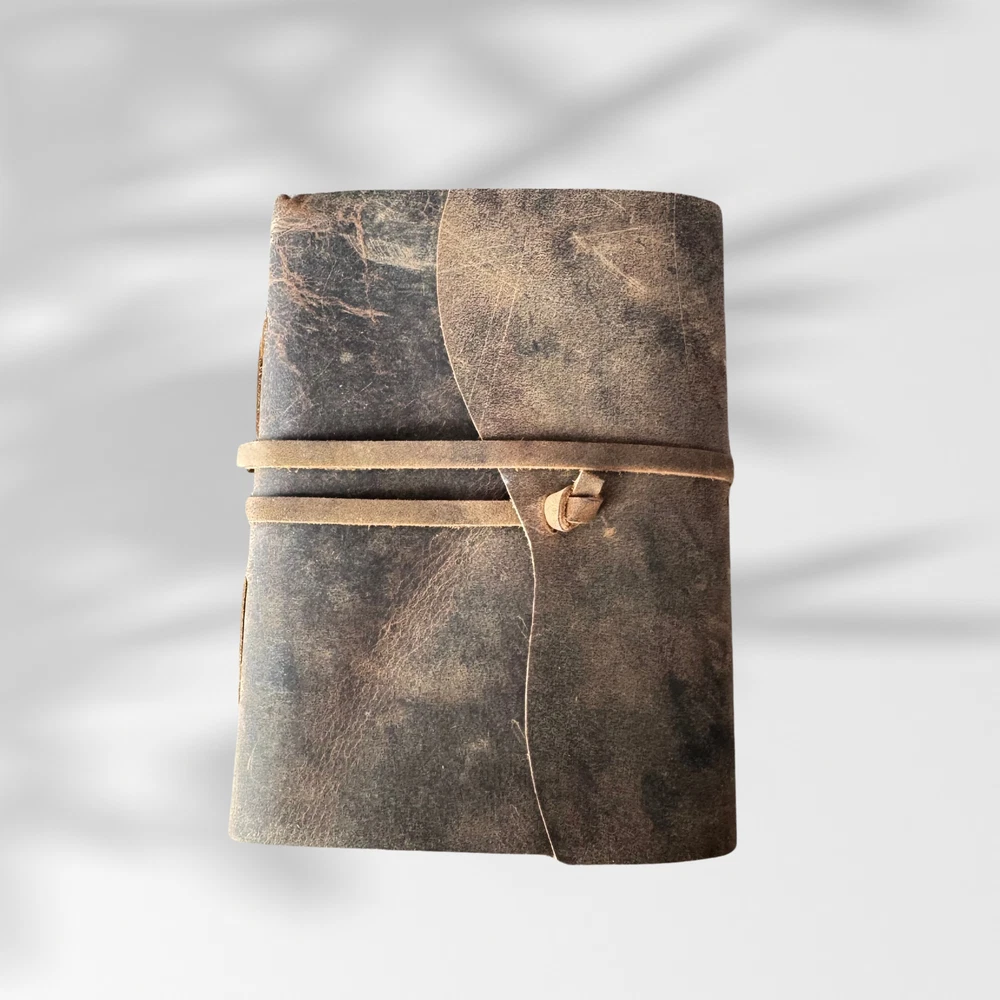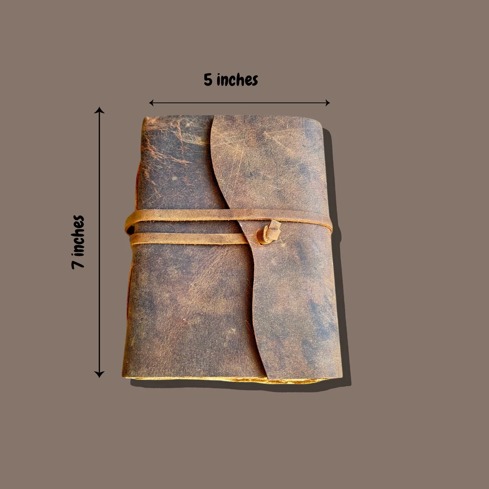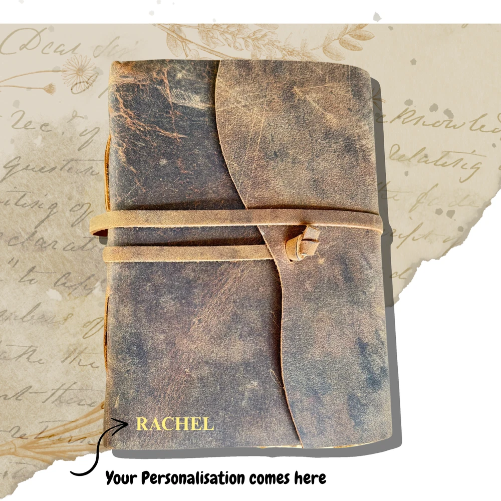 This Vintage Leather Journal is more than just a notebook—it’s your thoughts, dreams, and sketches wrapped in genuine leather and filled with handmade deckle edge paper. Whether you're capturing travel memories, sketching under the stars, or scripting your Book of Shadows, this leather-bound journal adds soul to your stories. Sturdy yet elegant, it's the perfect travel book to toss in your bag and take anywhere. No more torn pages or cheap bindings—just old-world charm and durability in one. ✔ Perfect for journaling, spellwork, or gifting ✔ 100% handmade with love and lasting quality PERSONALISATION Add an optional personalisation to your leather journal making it perfect for gifting. We use hot stamping and Times New Roman character for personalization in 0.6 mm letter size. The embossing will appear in the bottom left. Please send us your initials/name on the “Message to seller” section on your checkout. Write initials or a name (up to 8 characters) embossed in upper / lowercase letters or mix of both. For Eg - Jane (Mix of Upper and lower case) For Eg - JANE (Upper Case) For Eg - jane l(ower case) (Please write the personalisation as you want it to appear on the leather journal.) Ships from Melbourne within 1-2 business days via tracked postage.