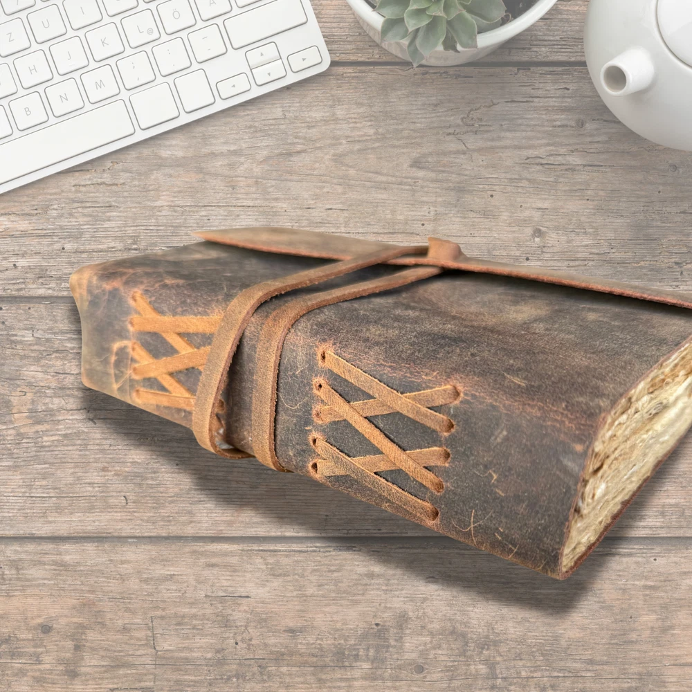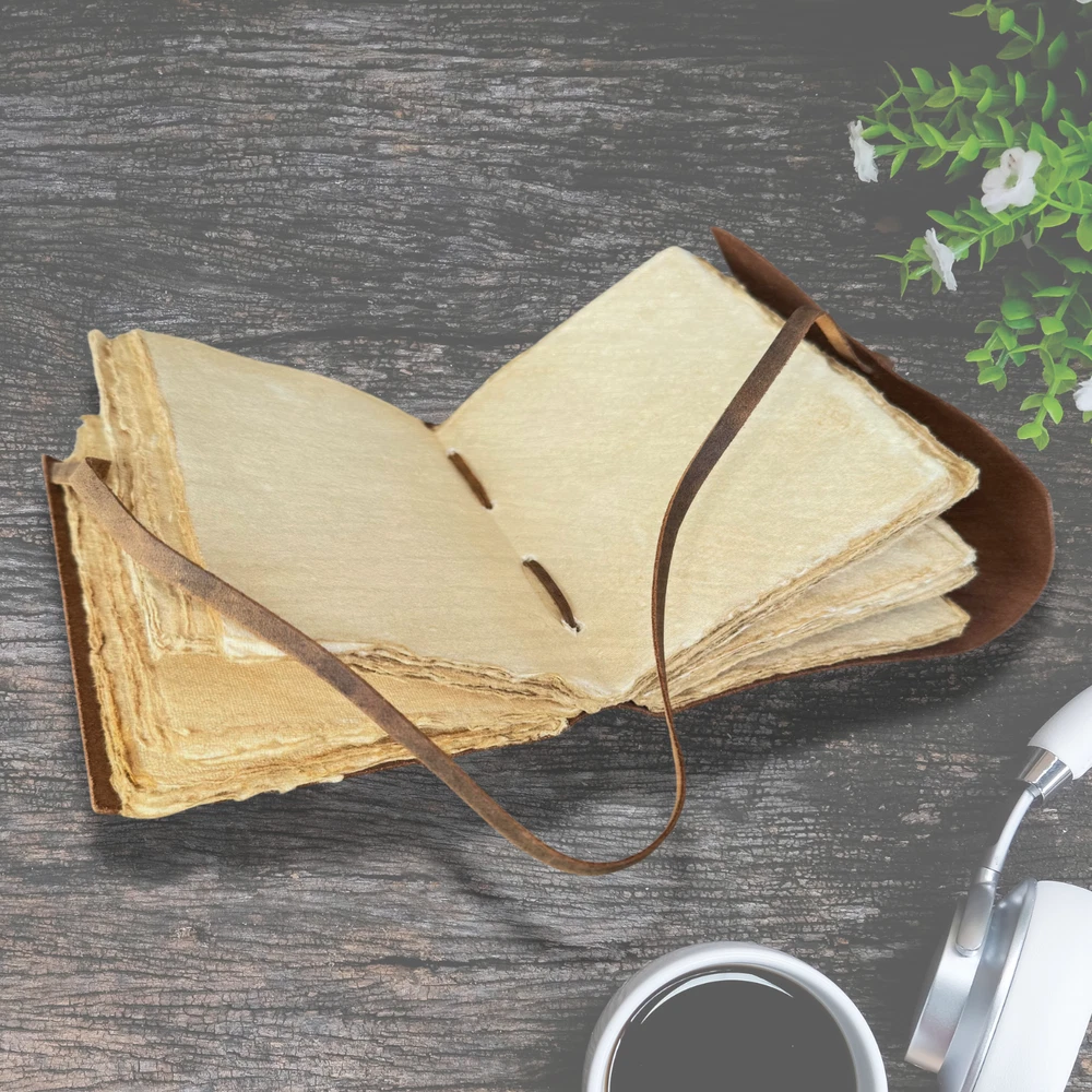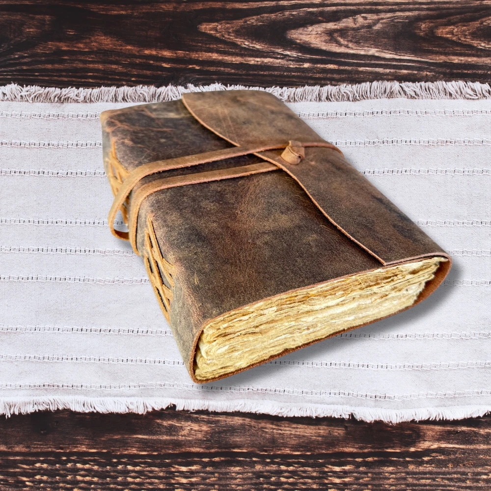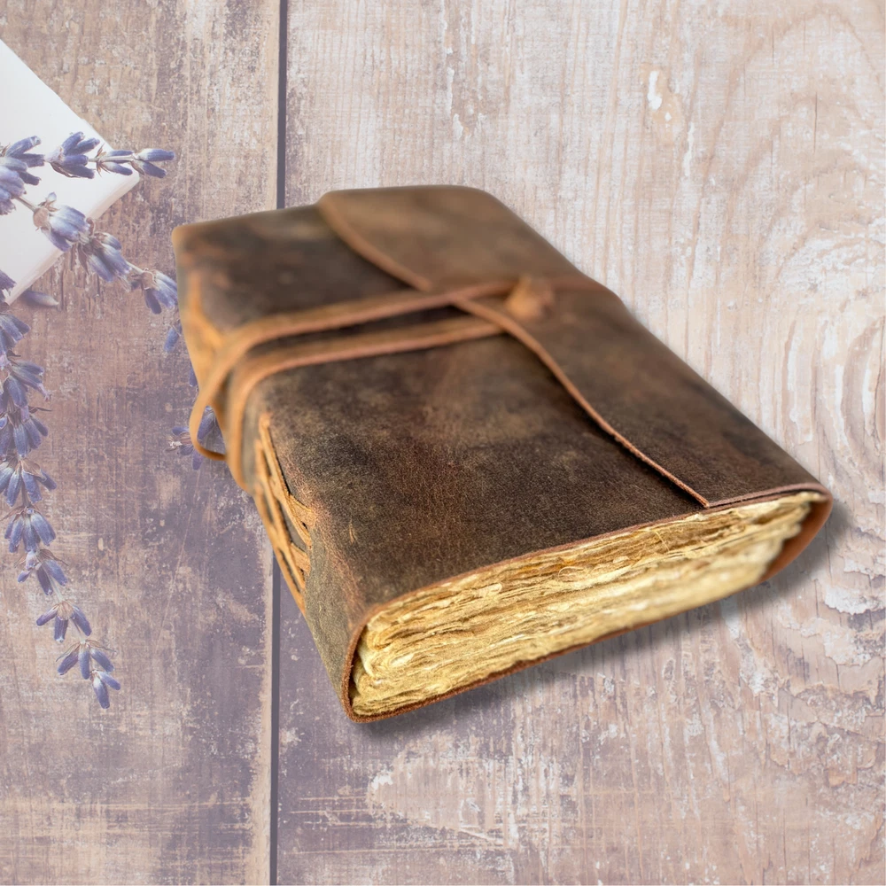 This Vintage Leather Journal is more than just a notebook—it’s your thoughts, dreams, and sketches wrapped in genuine leather and filled with handmade deckle edge paper. Whether you're capturing travel memories, sketching under the stars, or scripting your Book of Shadows, this leather-bound journal adds soul to your stories. Sturdy yet elegant, it's the perfect travel book to toss in your bag and take anywhere. No more torn pages or cheap bindings—just old-world charm and durability in one. ✔ Perfect for journaling, spellwork, or gifting ✔ 100% handmade with love and lasting quality PERSONALISATION Add an optional personalisation to your leather journal making it perfect for gifting. We use hot stamping and Times New Roman character for personalization in 0.6 mm letter size. The embossing will appear in the bottom left. Please send us your initials/name on the “Message to seller” section on your checkout. Write initials or a name (up to 8 characters) embossed in upper / lowercase letters or mix of both. For Eg - Jane (Mix of Upper and lower case) For Eg - JANE (Upper Case) For Eg - jane l(ower case) (Please write the personalisation as you want it to appear on the leather journal.) Ships from Melbourne within 1-2 business days via tracked postage.