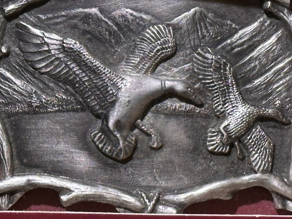Vintage Pewter Ducks Geese Belt Buckle by Great American Buckle Co