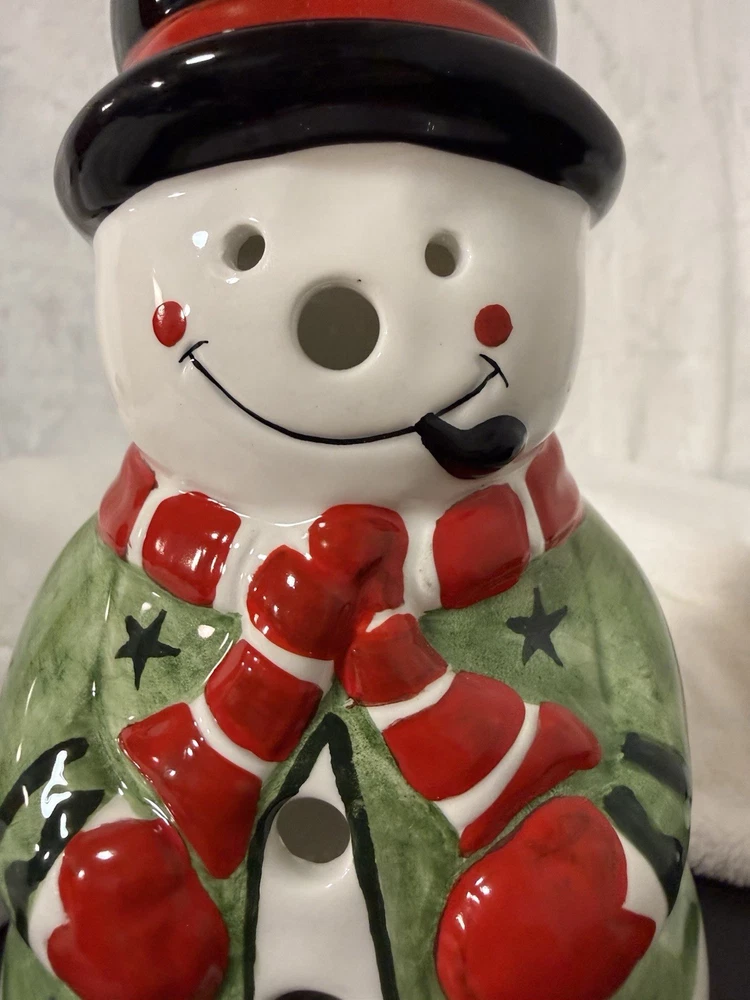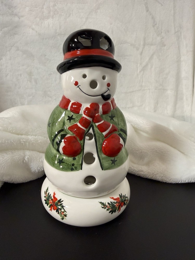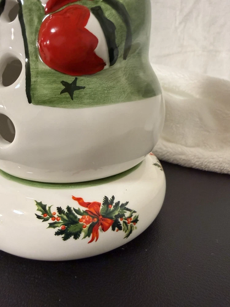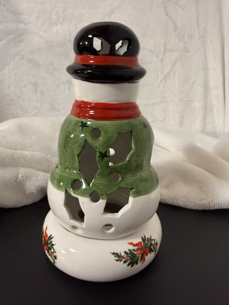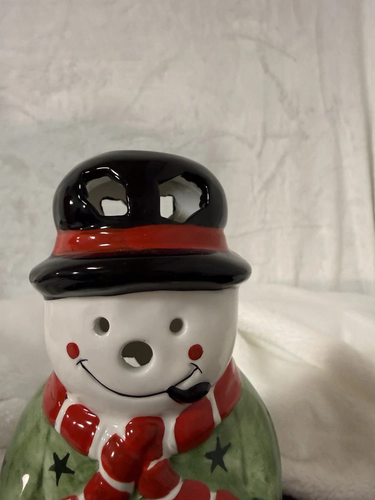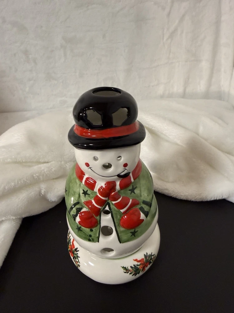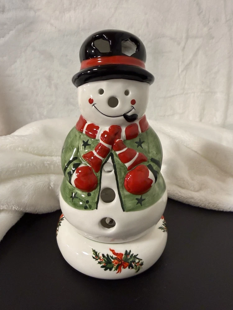 This Vintage Pfaltzgraff Ceramic Snowman Tealight Candle Holder is a charming addition to your holiday decor, perfect for Christmas. Made of ceramic in a multicolor design, this 1999 holiday collectible includes two pieces and comes in its original box. The snowman design adds a festive touch to your home, and the tealight candle holder will illuminate your space with a warm and cozy glow. A delightful piece to display and enjoy year after year. Appears to be new but I marked it as used. Box has a little wear but snowman is in perfect condition and looks to have never been used. Original tea light candle with it. Thank you for shopping and be sure to follow me for more great treasures. Merry Christmas!