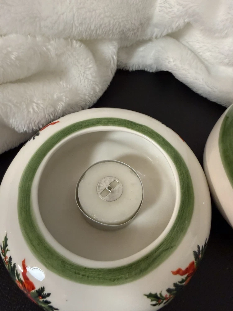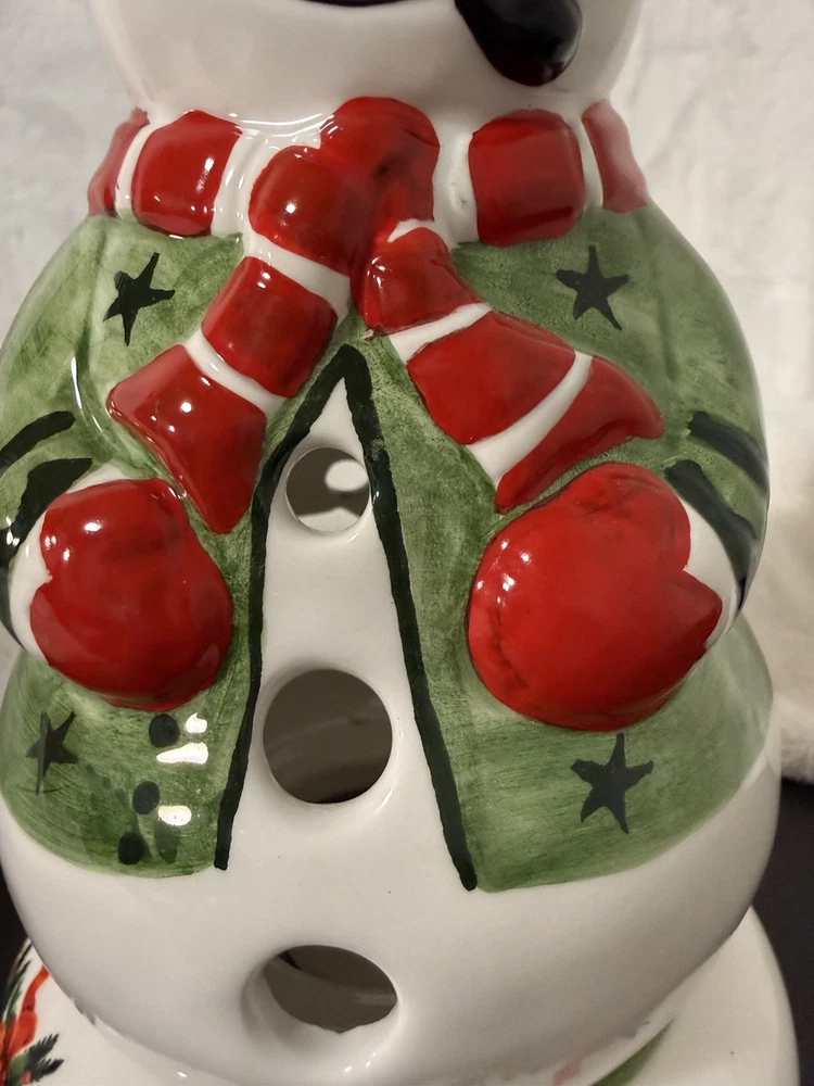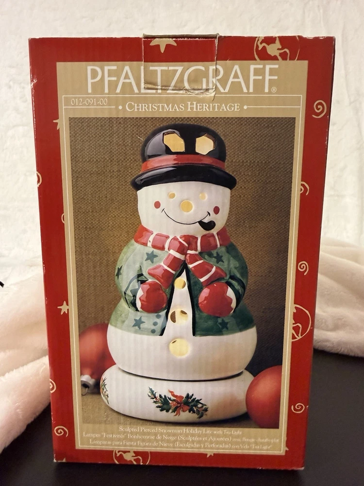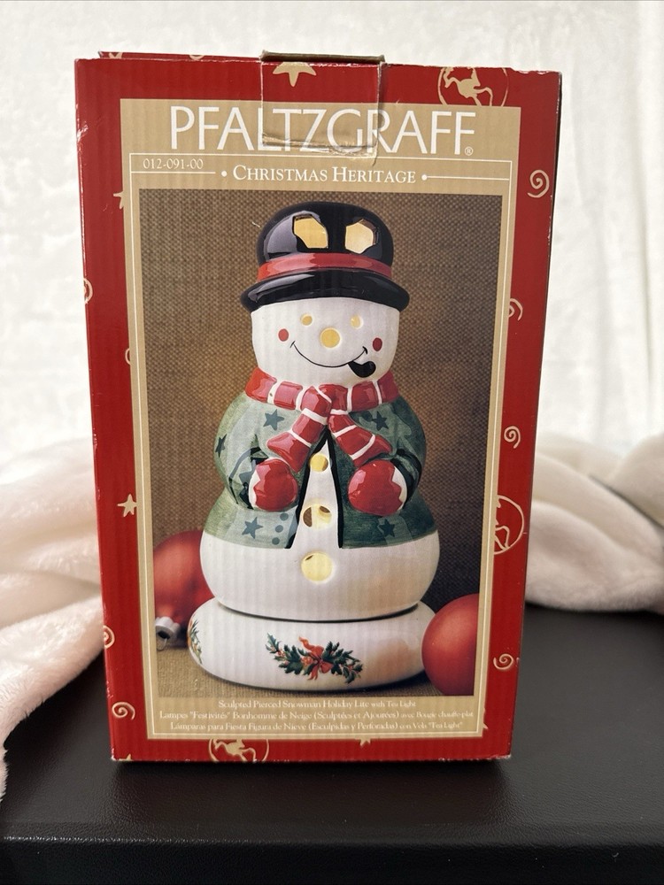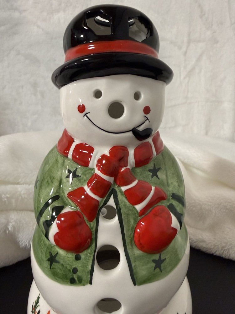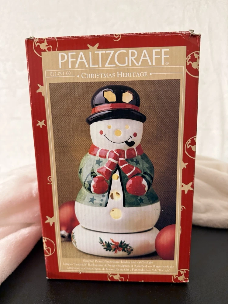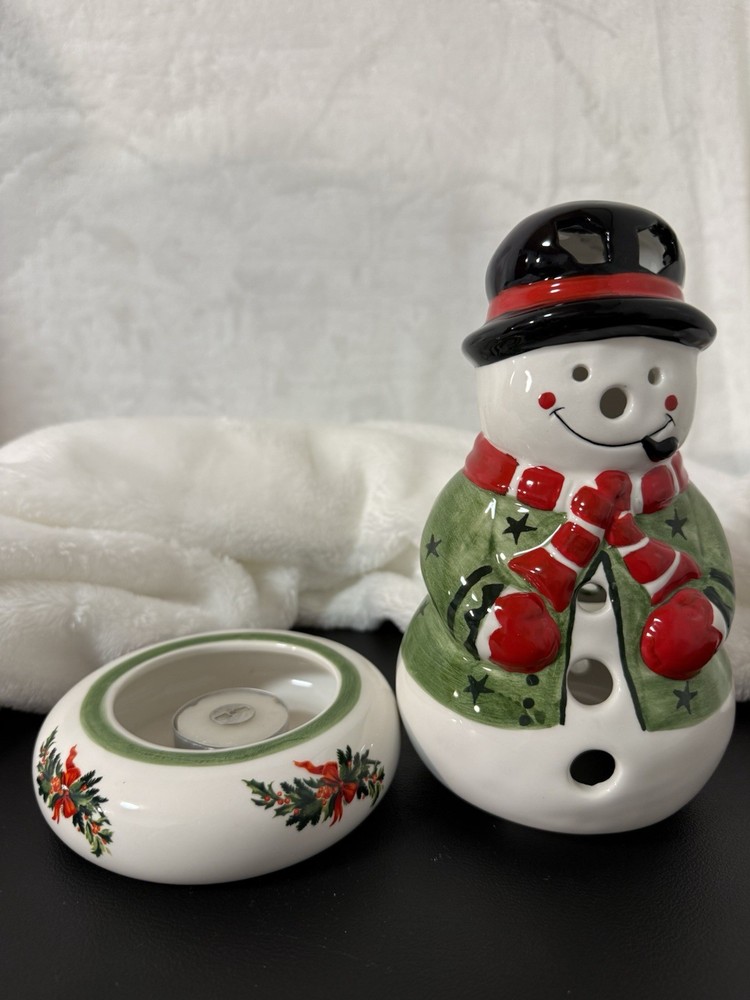 This Vintage Pfaltzgraff Ceramic Snowman Tealight Candle Holder is a charming addition to your holiday decor, perfect for Christmas. Made of ceramic in a multicolor design, this 1999 holiday collectible includes two pieces and comes in its original box. The snowman design adds a festive touch to your home, and the tealight candle holder will illuminate your space with a warm and cozy glow. A delightful piece to display and enjoy year after year. Appears to be new but I marked it as used. Box has a little wear but snowman is in perfect condition and looks to have never been used. Original tea light candle with it. Thank you for shopping and be sure to follow me for more great treasures. Merry Christmas!