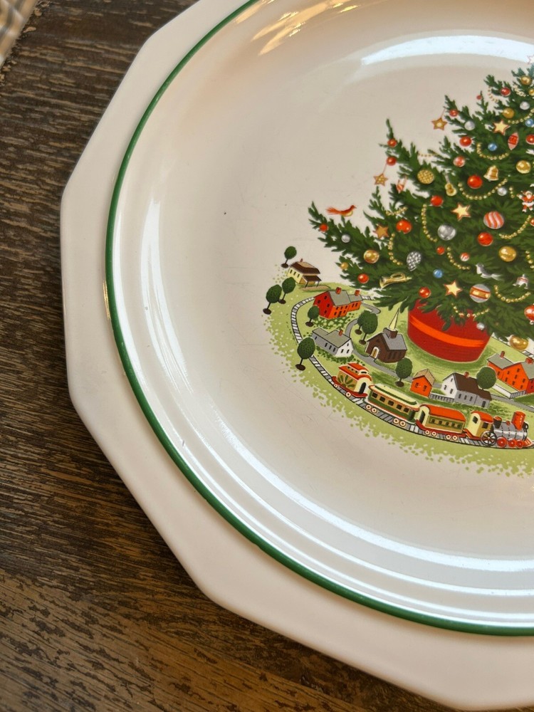 Vintage Pfaltzgraff Christmas Heritage 10 Inch Dinner Plate Tree Train Set of 2