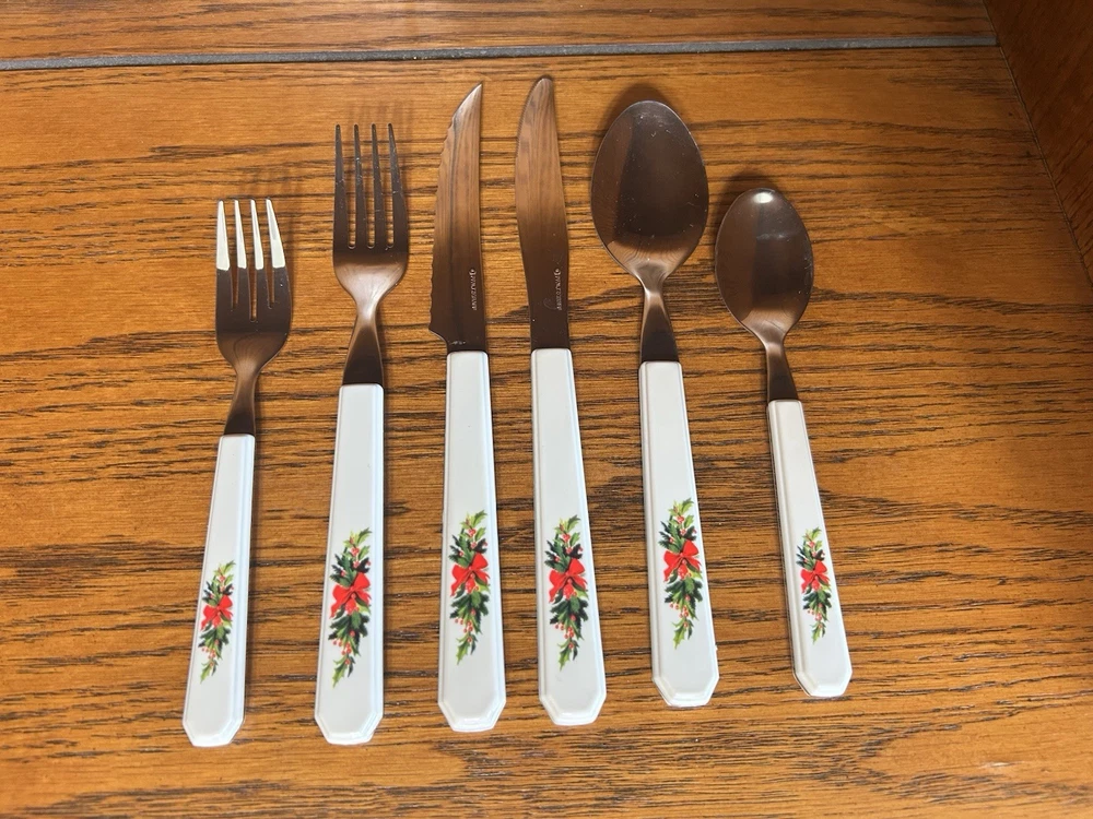 The Vintage Pfaltzgraff Collector Collection "Christmas Heritage" Dining Set is a festive and charming addition to any dining room during the holiday season. Made of durable stoneware and ceramic materials, this multicolor dining set features a Christmas theme that adds a touch of nostalgia to your holiday gatherings. With its classic design and American craftsmanship, this collection is sure to bring joy and warmth to your dining experience. Perfect for celebrating special occasions or everyday meals, this dining set is a timeless treasure that will be cherished for years to come. This set includes: 16 dinner plates 4 salad plates 4 bowls 4 mugs 4 saucers 1 serving bowl 1 salt and pepper set 1 butter dish Silverware includes: 12 large spoons 12 small spoons 12 large forks 12 small forks 12 knives 8 serrated steak knives