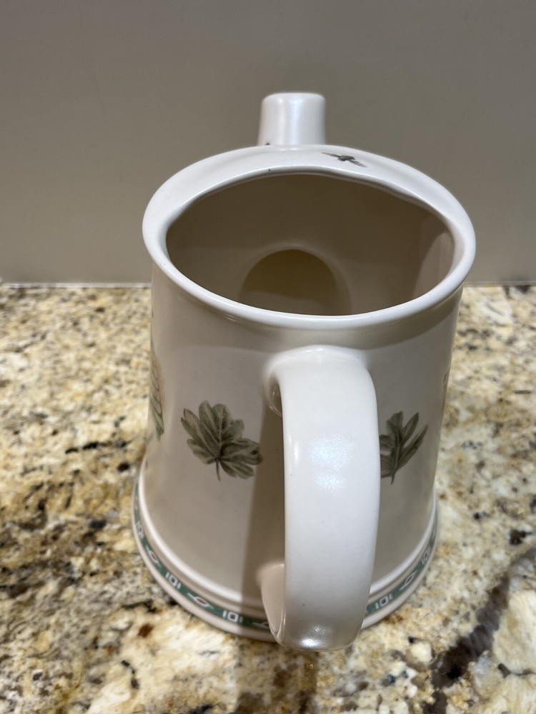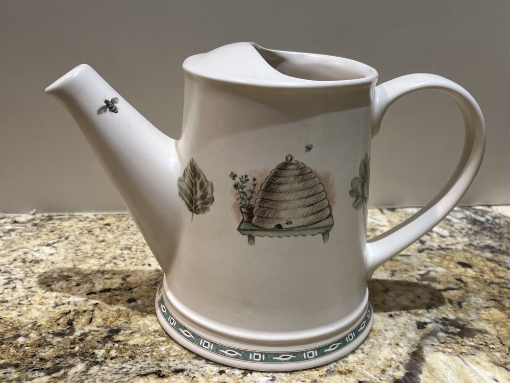 Adorable vintage stoneware watering can/pitcher from Pfaltzgraff’s Naturewood Collection , in very good condition! 🥰 🐝🪴 6.25” tall 4.24” x 2.25” top opening 10.5 spout tip to back handle 5.875” bottom diameter
