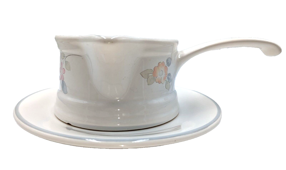 Vintage Pfaltzgraff Wyndham Gravy Boat w/Underplate American Made Stoneware. One issue - there is one chip, rather small, on the bottom of the gravy boat. The chip would not affect the use of the bowl. Otherwise no damage - please see the photos. All of my items are carefully packed for shipping, no matter their value - $5 items are wrapped with the same care as a $200 item. My goal is to have your purchase arrive safely. Large, heavy and fragile items are harder to use combined shipping with but just ask if you would like to purchase more than one item and I am more than happy to do so if feasible. Measurements are approximate or as close as I can get. Also, the color you see many not be the exact color depending on your computer or phone settings. Unpaid items will result in the buyer being blocked from further purchases. Please remit payment right away so we can get your item shipped out quickly.