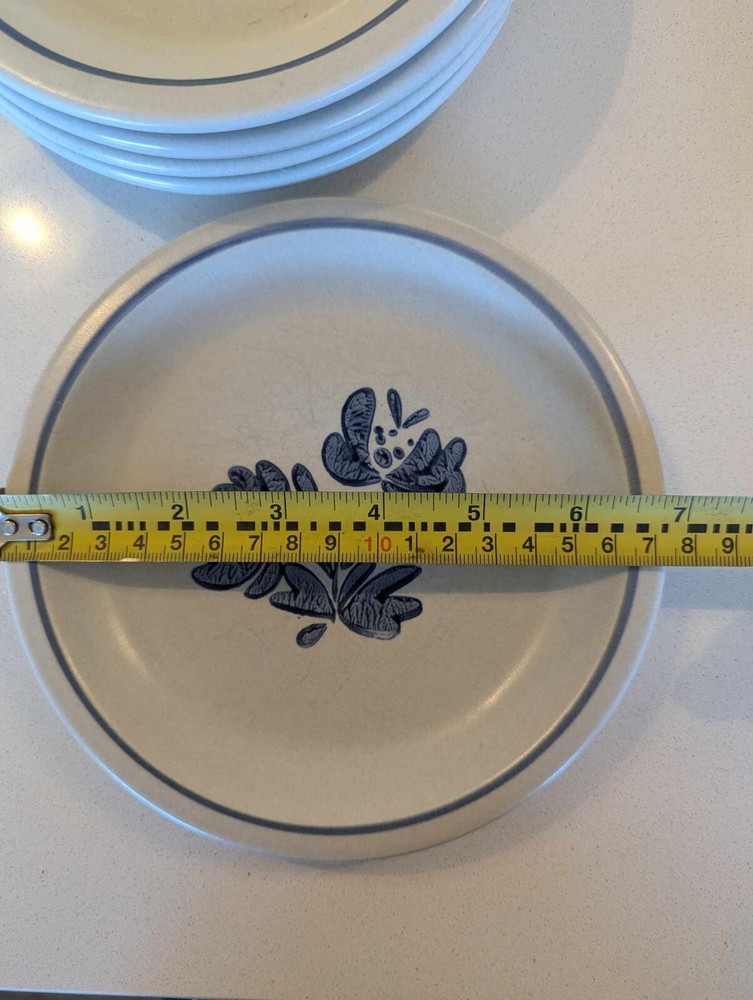 Production Technique: Pottery Vintage: Yes Production Style: Stoneware Material: Stoneware Pattern: Yorktowne Product Line: Yorktown Brand: Pfaltzgraff Origin: America Country/Region of Manufacture: United States Occasion: All Occasions MPN: N/A Set Includes: Bread Plate, Dessert Plate, Plate Set Type: Bread Plate Plate Diameter: 6 7/8" Time Period Manufactured: 1990-1999 Theme: Vintage Color: Blue/White Handmade: No