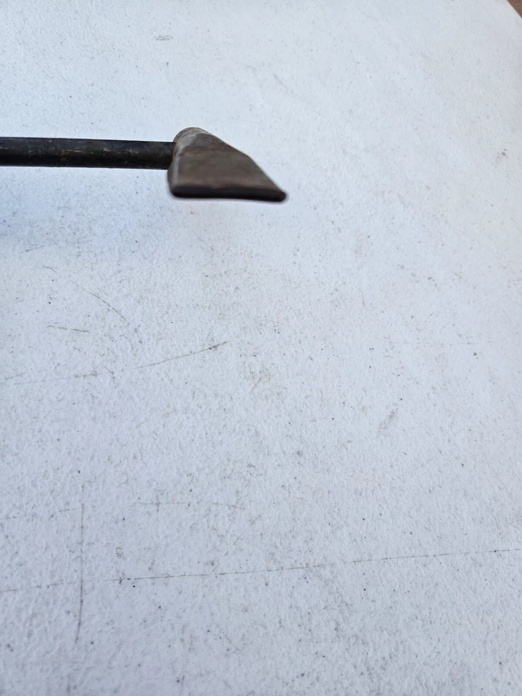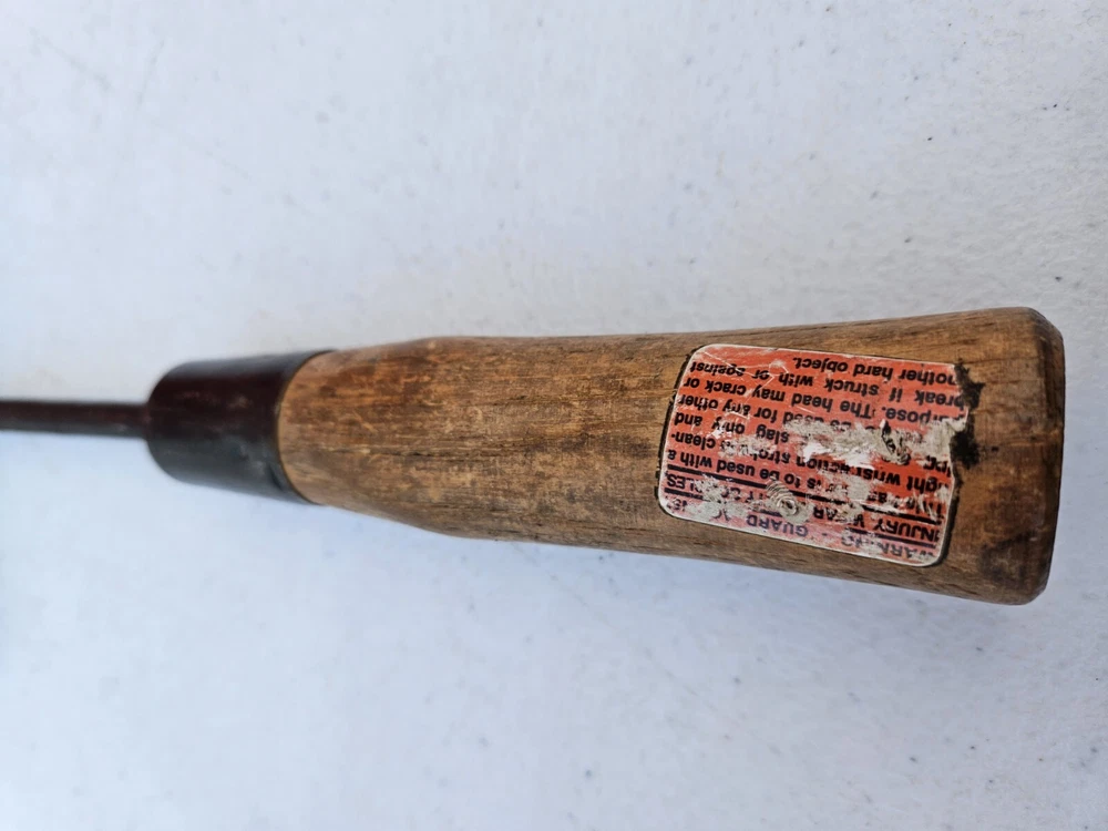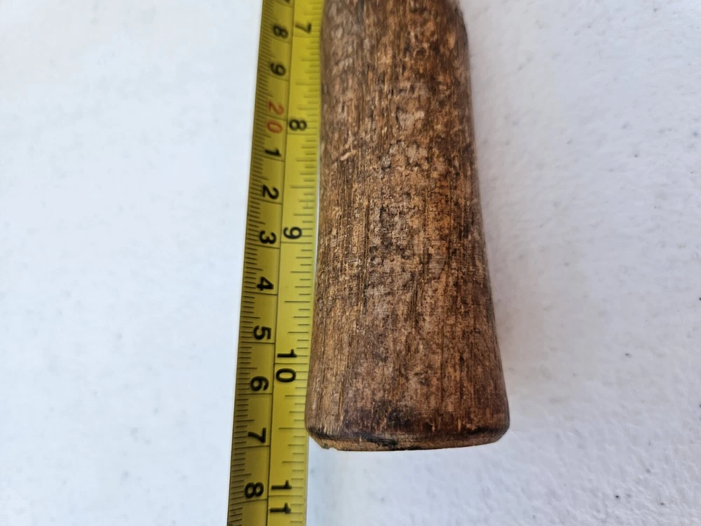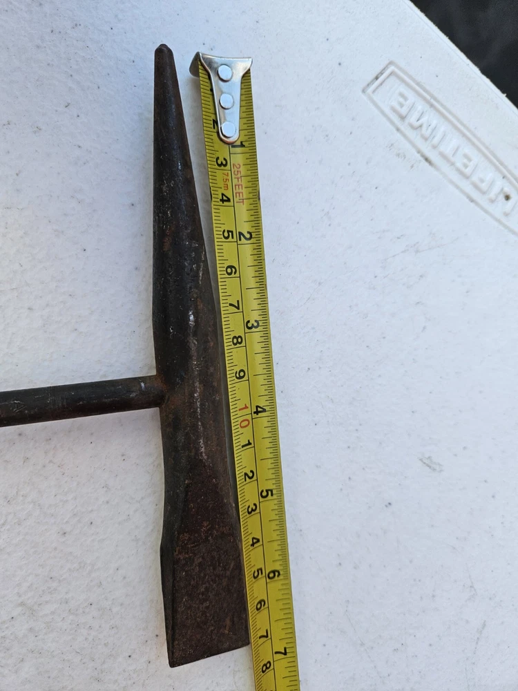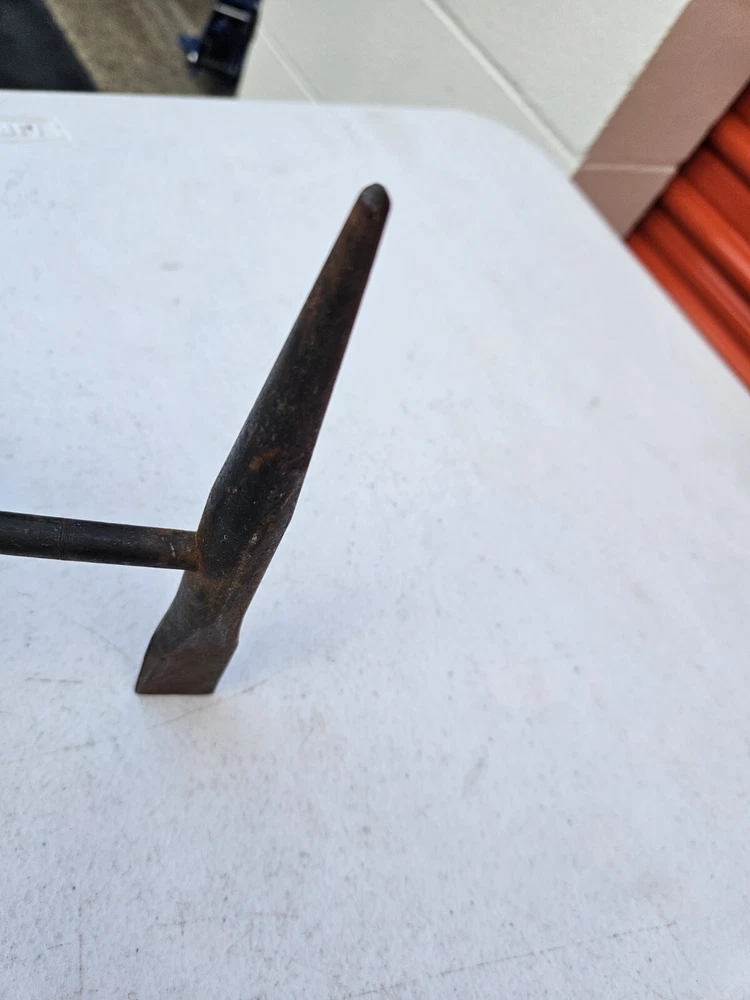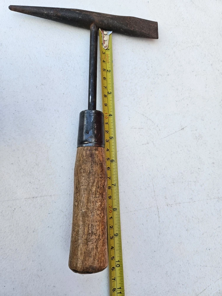 This vintage pick hammer is a unique addition to any collection. The rock chisel axe tool features a 10.5" long head and a 6.5" wood handle. The hammer is a vintage original and is perfect for collectors or anyone who appreciates vintage tools. It is ideal for use in carpentry and woodworking and is sure to be a conversation starter. Inherited dont know much about item Seems very sturdy.