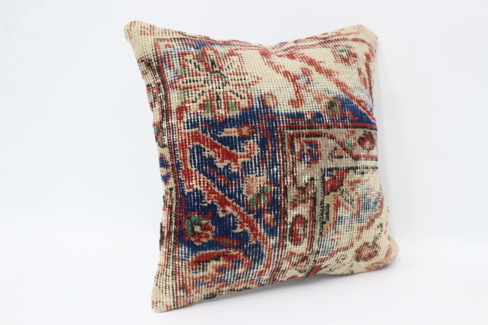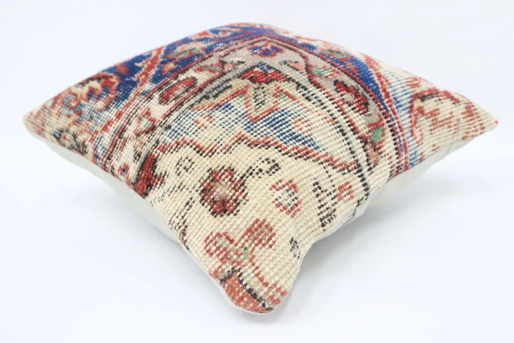 Vintage Pillow, Boho Pillow, Turkish Pillow, 14"x14" Blue Pillow Case