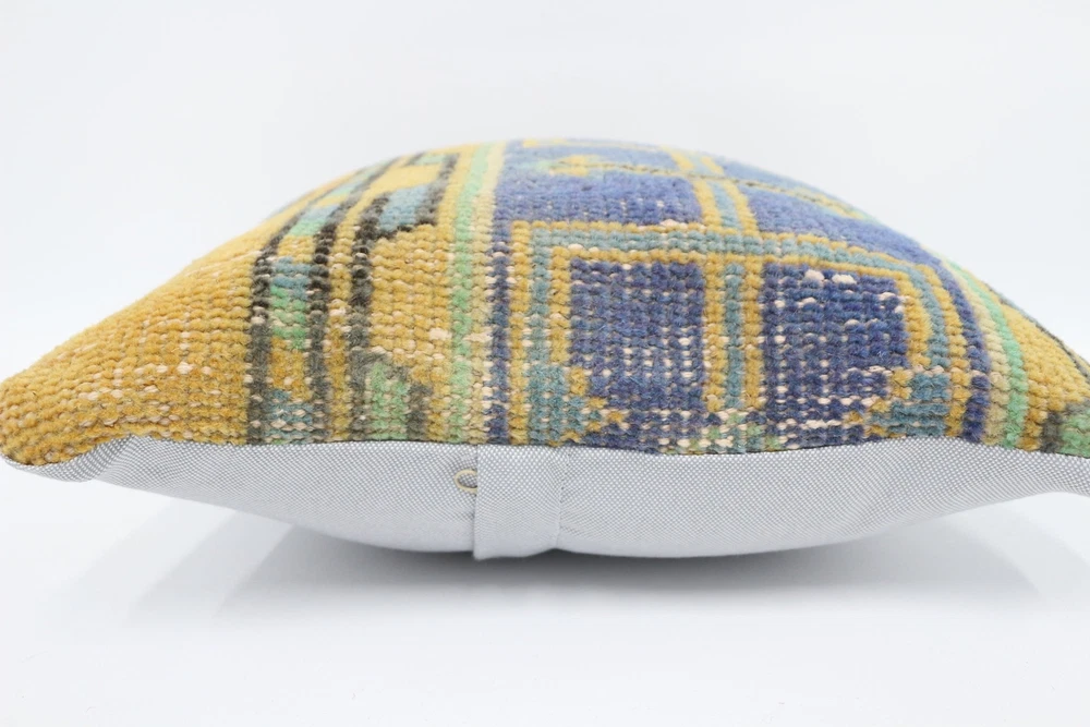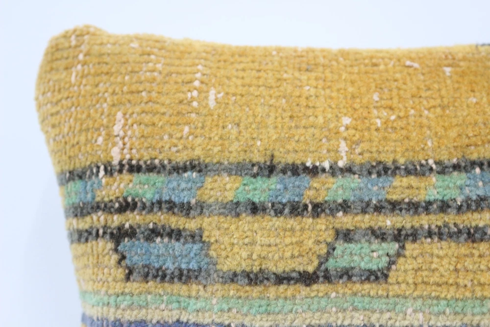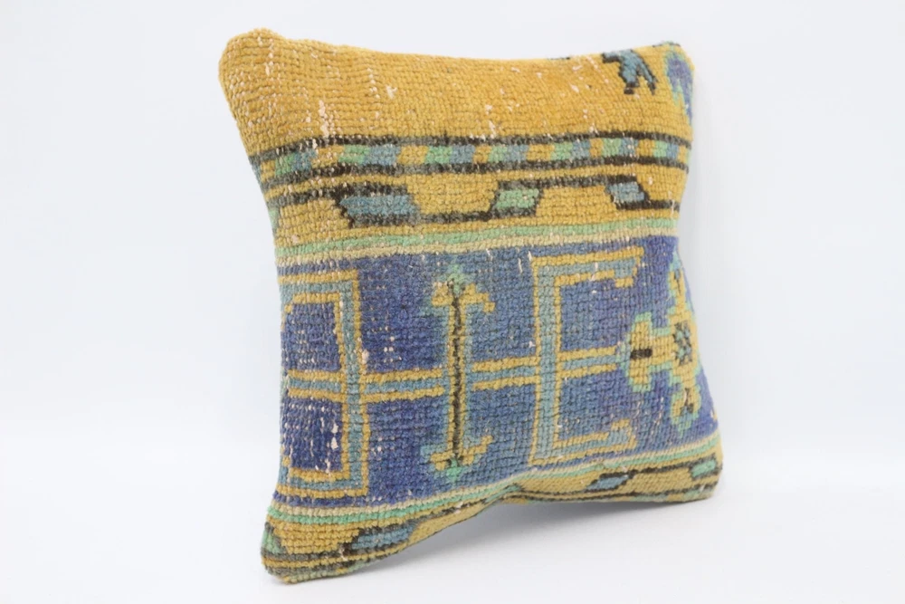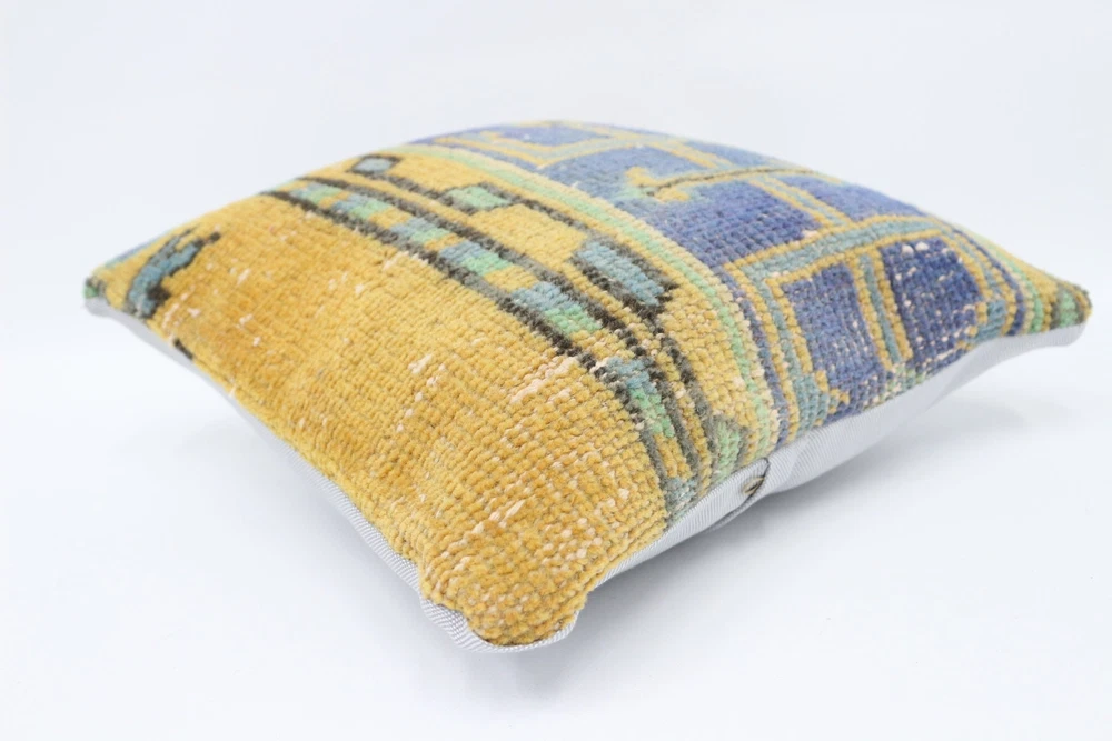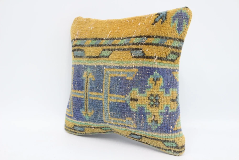Vintage Pillow, Ethnical Kilim Rug Pillow, 14"x14" Yellow Cushion