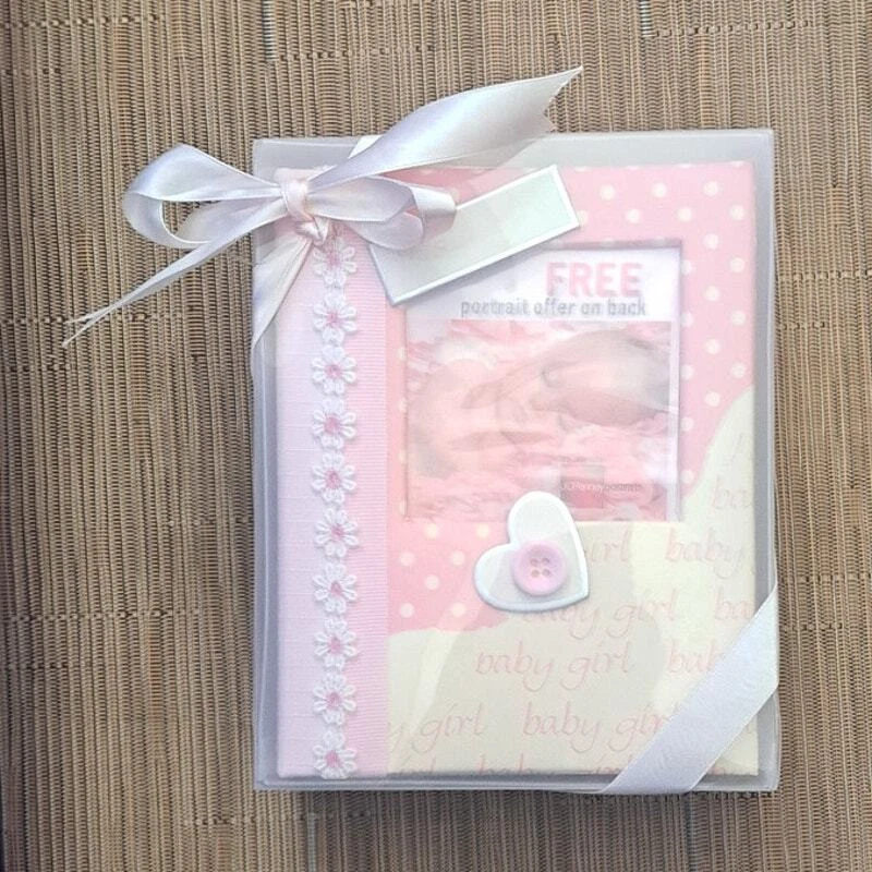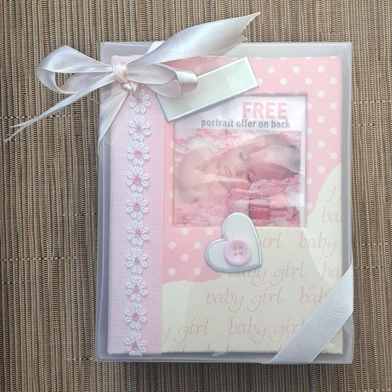 Vintage Pink "It's A Girl" Baby Photo Album Baby Shower Gift & Keepsake. By JCPenney Portraits. Holds 100 4x6 photos. Comes in a plastic case, wrapped in sheer cloth, with a bow. Very Nice! Will ship fast and with care!
