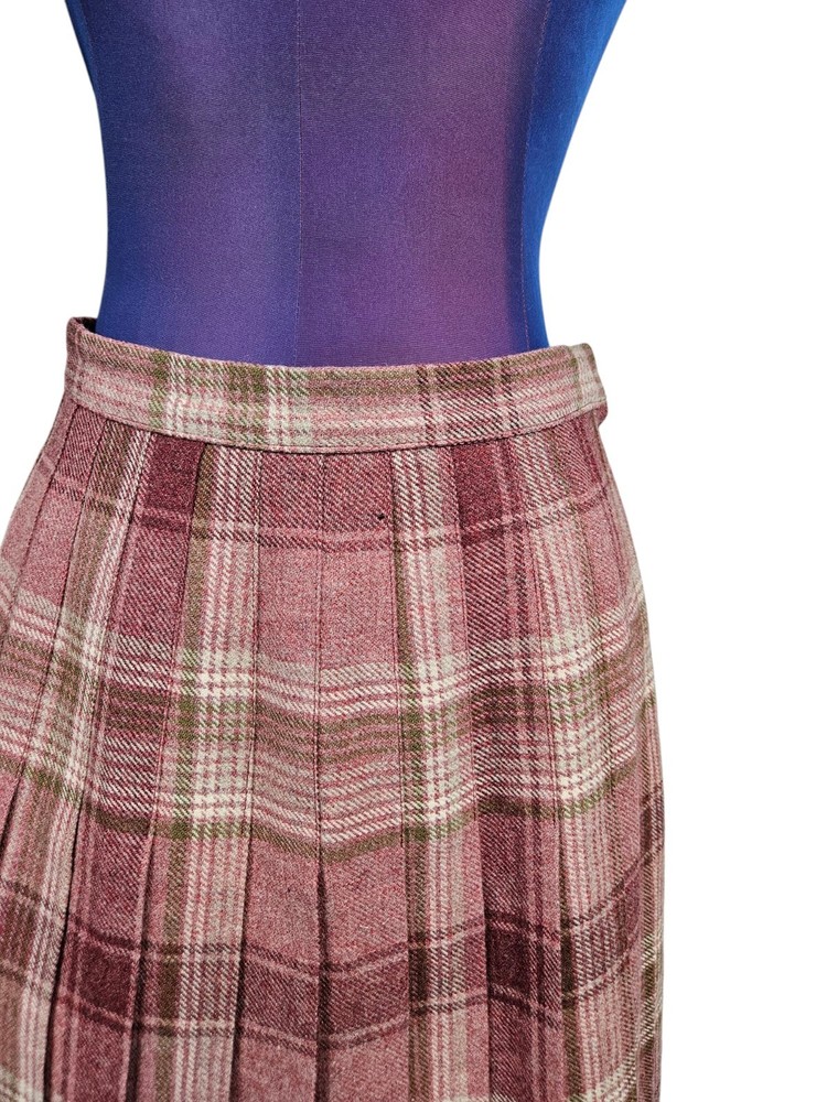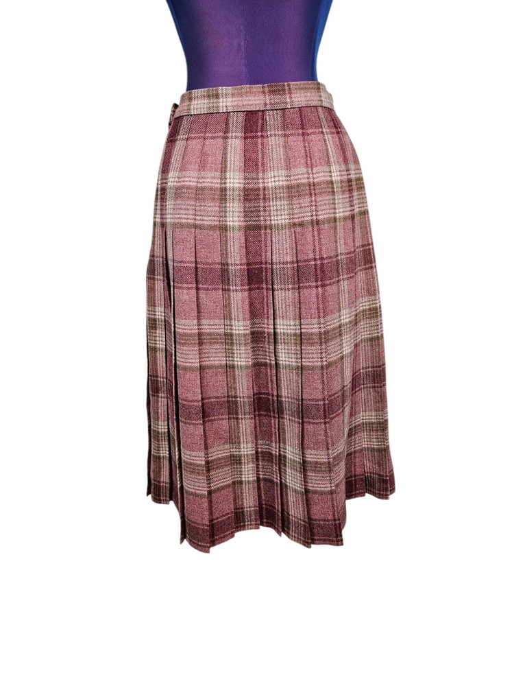 Vintage Edinburgh Woollen Mill Pink Plaid Wool Pleated Midi Skirt Size 12 D74 In great condition Vintage Edinburgh Woollen Mill Pink Plaid Wool Pleated Midi Skirt Size 12 D74 Mix and match this vibrant 1990s vintage flannel wool midi skirt with anything while staying stylish and warm! feminine pink hues plaid skirt with center box pleat and flat sides, fully satin lined, and waist side zipper closure. Labeled "The Edinburgh Woollen Mill". Academia style, Made in the Great Brittain. Measurements laying flat waist 12.5" length 27" hips 20.5" Fabric 100% pure new wool This is a pre-owned item that may show signs of wear. In great condition, a few small moth holes on skirt 14 Day returns accepted under the following conditions: Item must be in the same condition as stated If item shows additional wear buyer will receive a partial refund Buyer pays all shipping costs Refund amount will be for the item price only Please contact me prior to starting a return