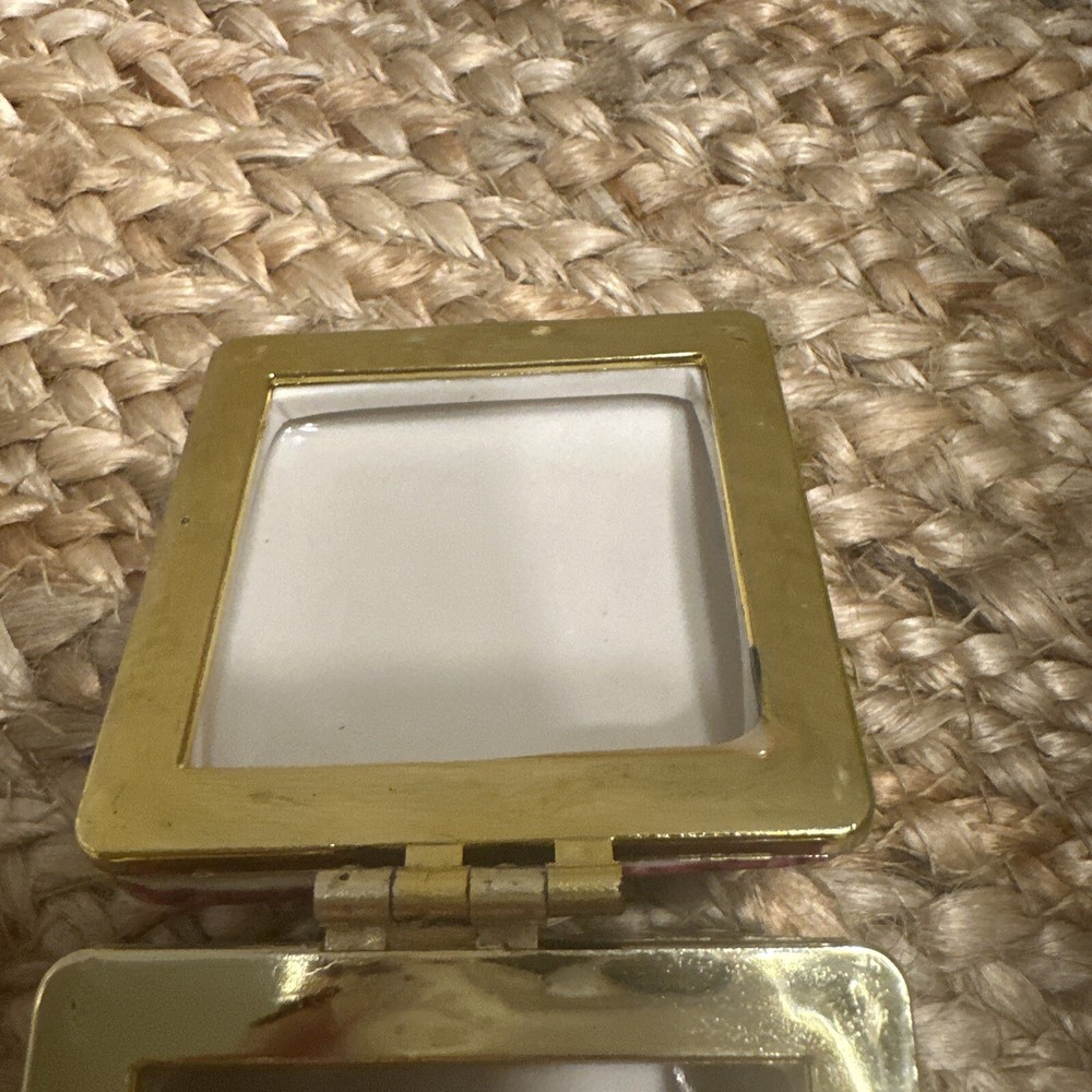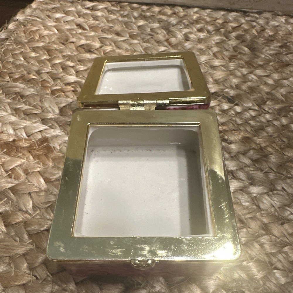 This vintage trinket box is a beautiful addition to any collection. The box features a lovely pink rose pattern and is hinged for easy access. Measuring at 2.5 inches in length, it is a small and perfect size for storing your favorite items. The box comes in a lovely gift box, making it a great option for a collector or as a gift for a loved one. The box is perfect for storing small items, such as jewelry or paper clips, and will add a touch of elegance to any room.