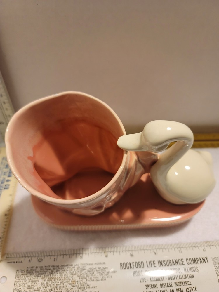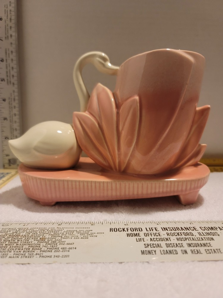 This beautiful rare & hard to find planter is a must-have for any pottery collector. The delicate pink water lilly and white swan design is sure to add a touch of elegance to any room. Crafted using traditional pottery techniques, this planter is both unique and functional. This is made of high-quality pottery, making this piece a true investment for any buyer. Whether you're looking to add to your collection or simply want a stunning plant display, this planter would be a perfect choice.