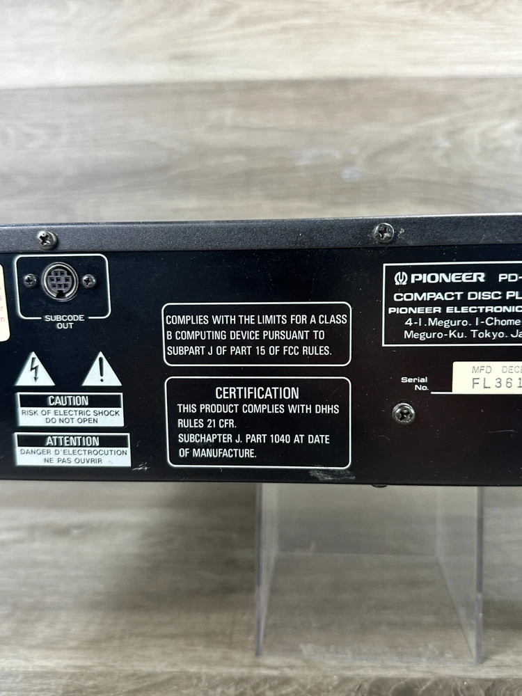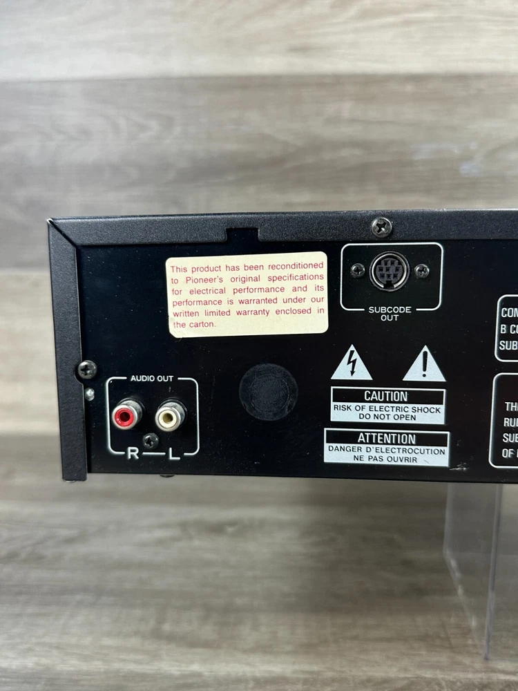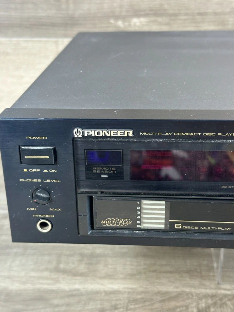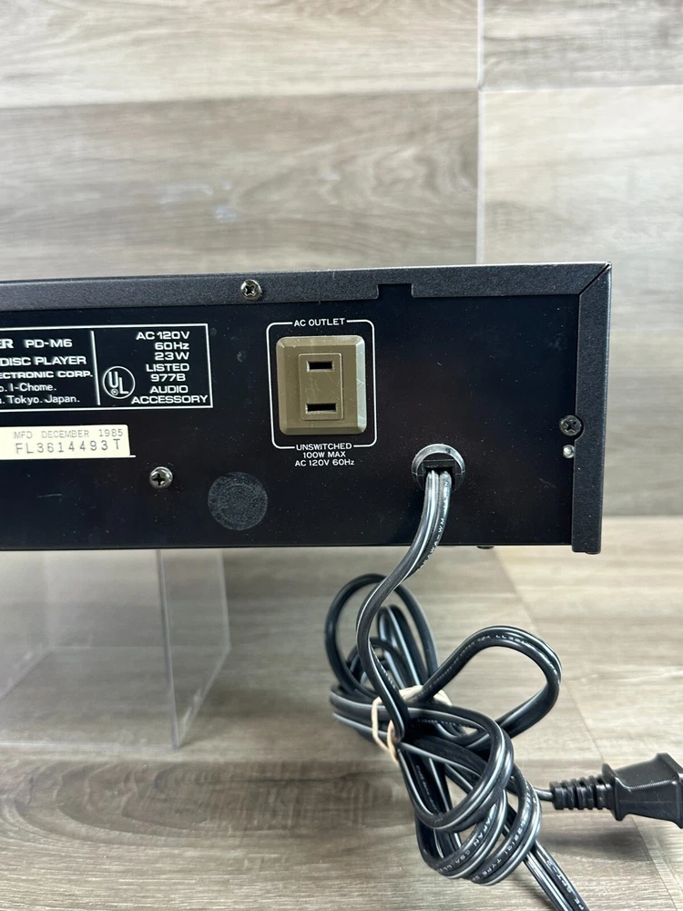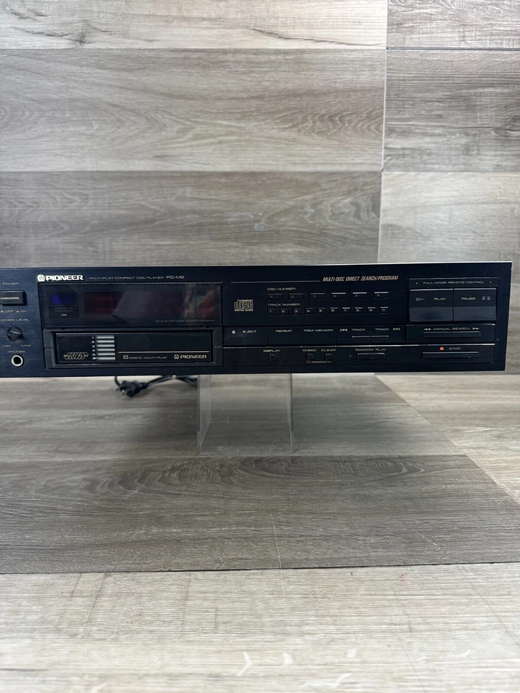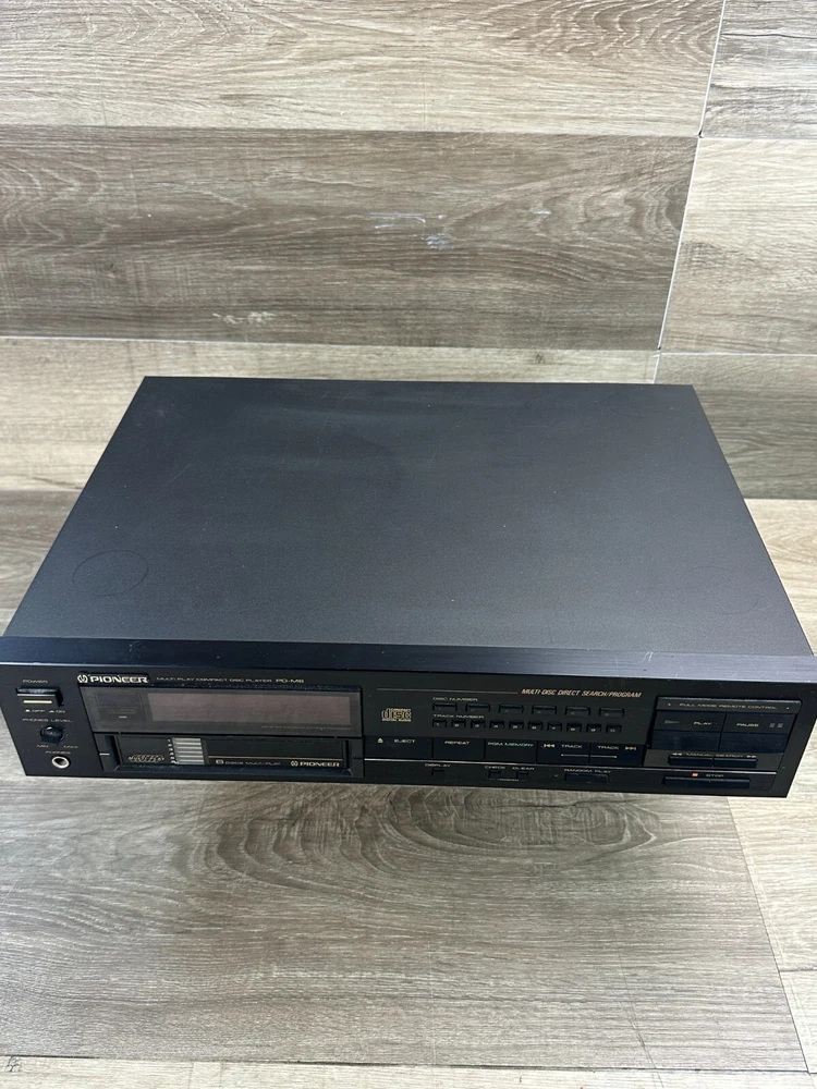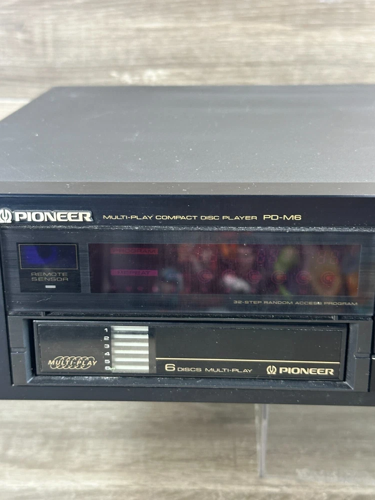 Vintage Pioneer PD-M6 CD Player With Six-Disc Cartridge Not Working Parts Only This vintage Pioneer PD-M6 CD player is a great addition to any collection, offering six-disc capacity and infrared connectivity. The sleek black design and audio outputs including headphone jack and stereo L/R RCA make it a versatile choice for any home audio setup. This item is being sold as parts only and is not in working condition. Product Details: Condition: Pre-Owned in Not Working Condition. Selling as for parts only. Device when power is pressed all you can hear is a clicking sound. (See Pictures for Reference and Size) Stored in a Non Smoking Home Shipping: I ship daily Monday thru Friday so expect a quick delivery Ships from California, USA Fast Shipping Contact us for any custom orders "All items pictured are included. Please take another look at pictures to view what you are purchasing." Thank you for checking out our listing. Please visit my eBay store to find harder to find, and unique items. To View More Items from our Store, Click our Direct Link to our eBay Store Below: ENJ ECommerce eBay Store